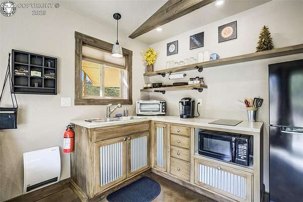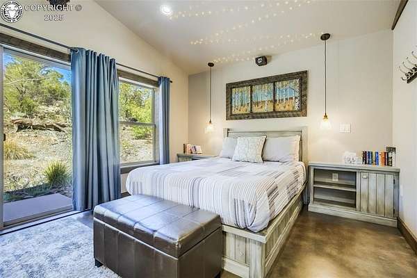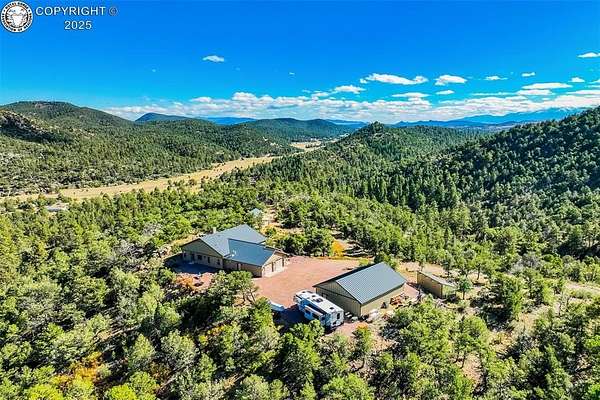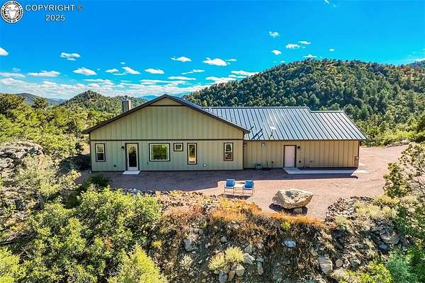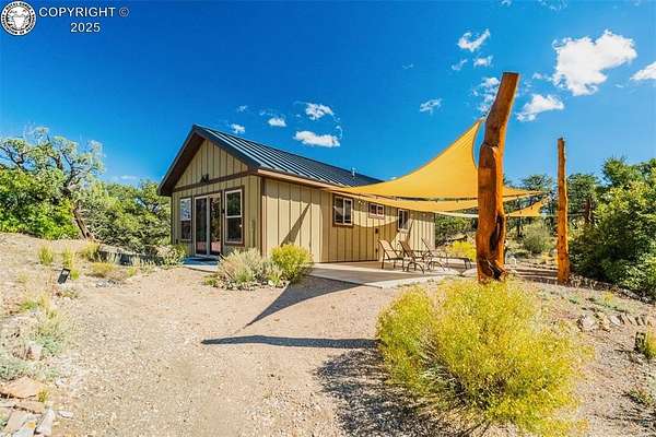 One of a kind mountain retreat with house and detached guest house, on 35 acres bordering BLM land, with end of the road privacy. No HOA. Rare opportuity to also purchase adjoining 35.60 acre lot. Close to town, yet a million miles away. Awesome views of the Sangre De Cristo mountains from the main house patio. As you enter the front door you are greeted with vaulted ceilings, a huge open great room with a window wall that makes the outdoors feel like an extension of the inside. The kitchen is equipped with high end Kitchen Aid appliances, custom cabinets and a large island perfect for gatherings and morning coffee. The master bath feels like your own personal spa, with soaking tub and a large walk-in shower. The office is set up to be converted to another bedroom if needed. But even better is the 680 square foot accessory dwelling unit which can be used for rental income, multigenerational housing, or housing family members. The ADU is set up with 2 rooms, each with a queen bed and kitchenette. In addition to the main house and ADU, there is a 1200 square foot heated shop and a huge custom-built greenhouse. The house, guest house and shop are all built to high-performance standards, with efficiency in mind. James Hardi fiber cement siding, 24-gauge metal roofs, insulated stem wall and slabs and much more. The house uses passive solar and a wood stove for heat. It also has a forced air furnace, but is rarely needed when running the woodstove. Custom woodworking throughout. Backs to over 33,000 acres of BLM with thousands more in the surrounding area. After hiking the trails on property, come back and relax in the hot tub surrounded by nature, silence and solitude. There's nothing like sitting in the hot tub under the dark skies, seeing the Milky Way and shooting stars.