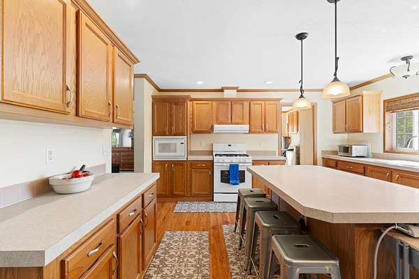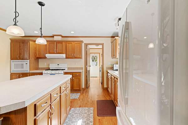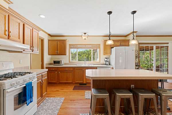 - Dishwasher, Electric Water Heater, Exhaust Fan, Free-Standing Propane Oven, Microwave, Refrigerator