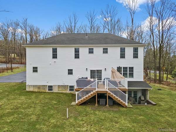 Experience refined living in this stunning Great Hall Colonial, offering 3,225 sq ft of thoughtfully designed luxury. A dramatic Great Hall with open-air overlook creates an impressive architectural centerpiece, seamlessly connecting both levels. This elegant home features 4 bedrooms and 3.5 baths, including a luxurious primary suite with a spa-like bath and dual walk-in closets, plus a private en-suite guest bedroom. The gourmet kitchen is designed to impress, anchored by an oversized quartz island and upscale finishes-perfect for entertaining. 9-foot ceilings on every level, and superior 2x6 construction showcase quality craftsmanship throughout. The expansive walkout basement, already plumbed for an additional bath, offers endless possibilities for a custom retreat, guest suite, or extended living space. Enjoy outdoor living on the large deck overlooking a beautifully landscaped, private backyard, while a charming bay window highlights the front grounds. Complete with first-floor laundry and a two-car attached garage, this home blends elegance, comfort, and future potential.