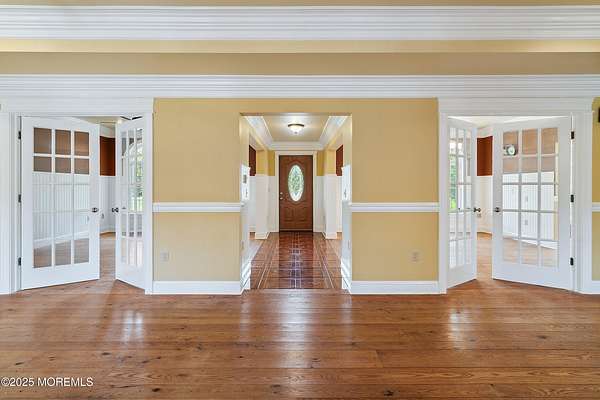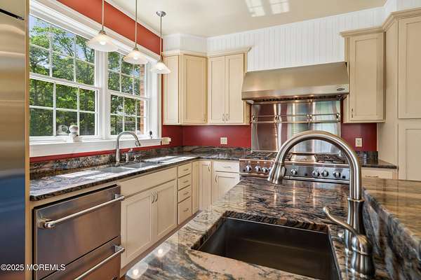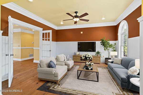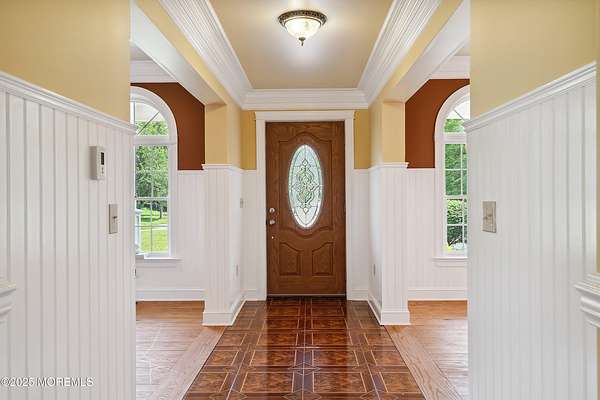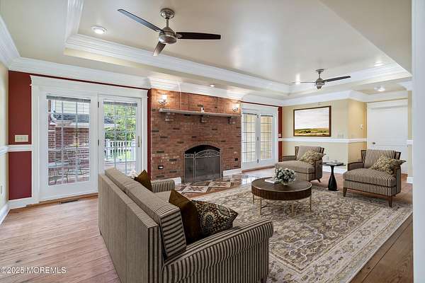 Discover exceptional craftsmanship and elegance in this stunning craftsman estate compound, thoughtfully designed for comfort, privacy, and multi-generational living. Situated on 2.44 beautifully landscaped acres, this property features dual primary suites and a fully equipped private in-law suite with both a separate entrance and interior access complete with its own full kitchen, living area, spacious bedroom with walk-in closet full bath, and laundry. The custom main residence showcases meticulous detailing throughout, including 9ft ceilings, milled red oak hardwood flooring, custom ceramic tile, detailed 3 piece crown & chair rail molding, and elegant recessed lighting. Radiant heat and abundant natural light from atrium windows create a warm, inviting atmosphere. Multiple French doors offer seamless indoor-outdoor flow, perfect for entertaining or relaxing. The family room boasts a unique tray ceiling and an oversized fireplace hearth, while the gourmet chef's kitchen is a dream - outfitted with professional-grade appliances and three sinks for maximum functionality. A detached 2-car garage with multiple entry points also includes a third garage space that leads to a full walk-out first floor/unfinished basement - ideal for a workshop or potential expansion. This private estate offers ample room for boats, RVs, and recreational vehicles, and is ideally located just a short ride to Long Beach Island with convenient access to dining, shopping, and outdoor recreation. Luxury, privacy, and flexibility - all in one remarkable property. Don't miss this unparalleled estate.