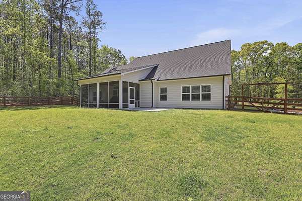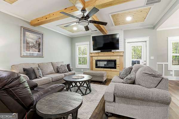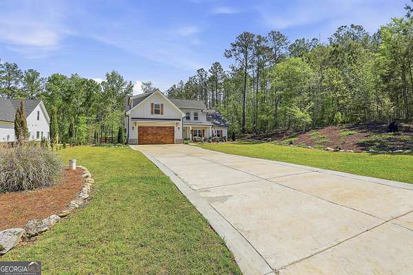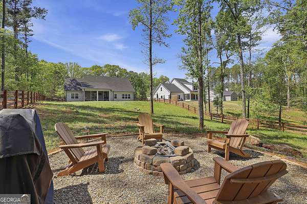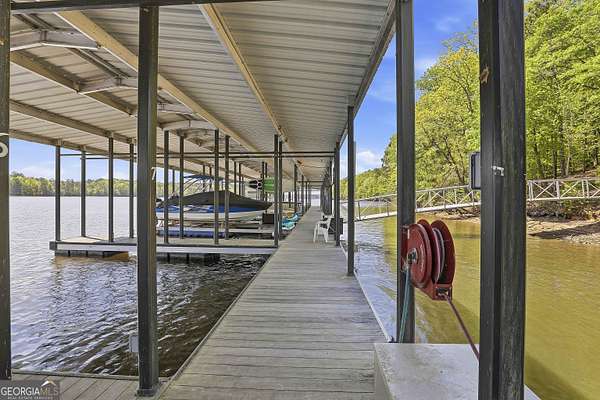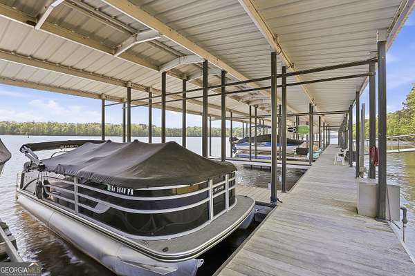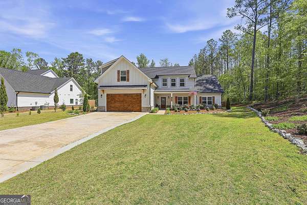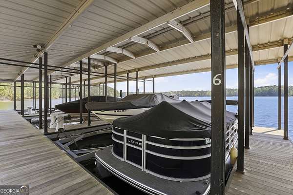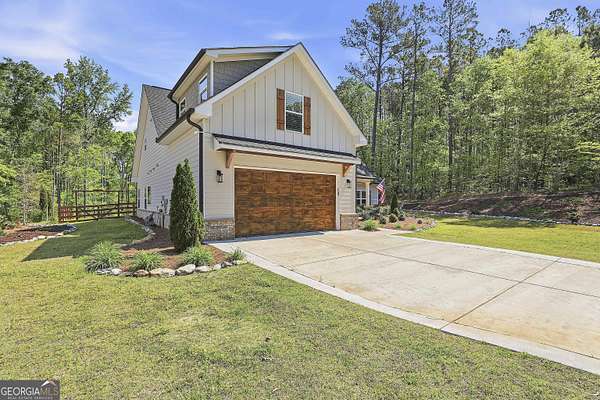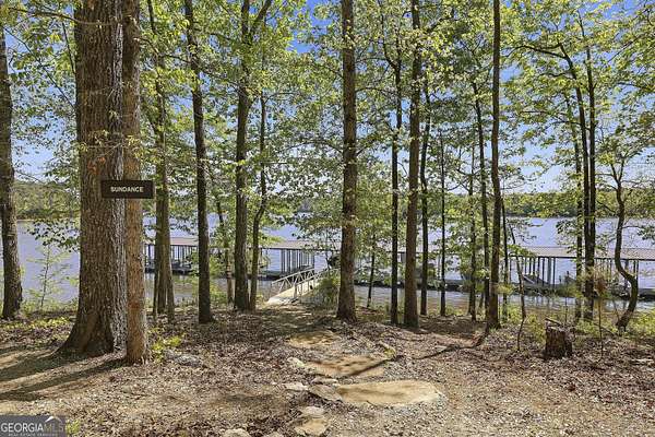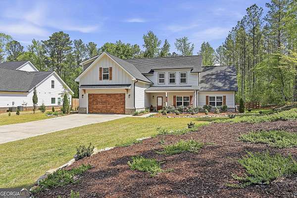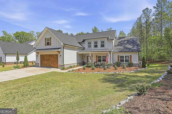 Welcome to The Lake Life. This Craftsman-style lake home offers a private, serene setting on West Point Lake, featuring 5 bedrooms and 3.5 bathrooms with a thoughtfully designed layout. The main level includes 3 bedrooms and 2.5 baths, while the upper level offers 2 additional bedrooms, a full bath, and a versatile loft space-ideal for guests or extended stays. Nestled within a gated neighborhood where residents enjoy peaceful walks and lake living, the property backs up to West Point Lake, providing added privacy and the rare ability to walk down and launch a kayak directly from your backyard. A deeded boat slip with water and power (Sundance Slip #6) is included and located just a short golf cart ride away, offering effortless access to the lake. Inside, the home showcases LVP flooring and ceramic tile throughout, complemented by neutral designer tones, plantation shutters, and elevated wood detailing. A flexible space off the entry serves beautifully as a formal dining room or private office, with a well-positioned laundry room for added convenience. The main living area is open and inviting, anchored by an electric fireplace and seamlessly connected to the kitchen. The kitchen is thoughtfully appointed with leathered granite countertops, a spacious island with seating, tile backsplash, stainless steel Thor appliances, a built-in drawer microwave, pantry, and a light-filled breakfast area. The primary suite on the main level offers a refined retreat with crown molding and a spa-like bath featuring shiplap accents, tile flooring, a tiled shower, garden tub, and a double vanity with quartz countertops. The split floor plan enhances privacy, with additional bedrooms tucked away in their own wing. Upstairs provides exceptional flexibility with two bedrooms, a full bath with double vanity, and a loft space-perfect for guests, a media room, or additional living space. Outdoor living is equally impressive, featuring a screened-in porch with tongue-and-groove ceilings and stone flooring, a welcoming front porch, a level fenced backyard, and a cozy fire pit area designed for relaxing evenings. Conveniently located approximately 53 miles from Hartsfield-Jackson Atlanta International Airport and just 7 miles from downtown LaGrange, this home offers the perfect balance of peaceful lake living and accessibility-ideal as a full-time residence or an elevated weekend retreat.