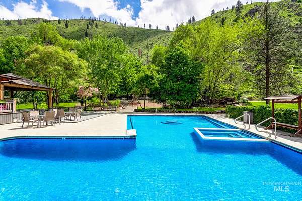 Tucked away on 155 private acres just 9 miles up Big Salmon River Road outside Riggins, Idaho, this geothermal hot springs retreat feels like its own hidden world. Cross the single-lane suspension bridge and you're welcomed by sweeping grounds, rich with the history and character that have defined this estate for generations. At the heart of the property is a furnished three-story, 5,700 sq. ft. lodge, complemented by a separate complex featuring three 1-bed/1-bath condos. A pool house with a recreation room and additional sleeping space, plus an office with its own living quarters, round out the accommodations. The amenities are just as impressive: over a mile of Salmon River frontage, Starlink broadband internet, a spring-fed pond, a generous garden area, a greenhouse, and multiple water rights. Wildlife is abundant-elk, deer, and even the occasional bear wander through this untouched landscape. Long known for the mineral-rich, healing qualities of its geothermal waters, the property sits along the legendary Salmon River-the famed River of No Return-and enjoys easy year-round access with minimal snowfall. Price improvement reflects updates that are needed; property is being sold "as is."