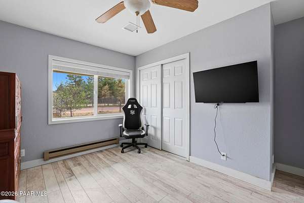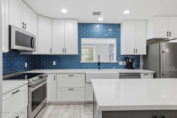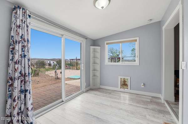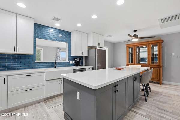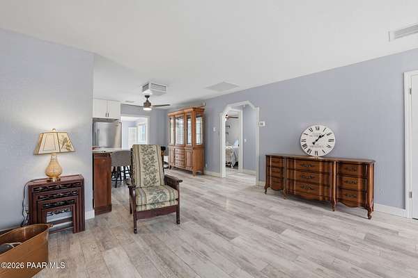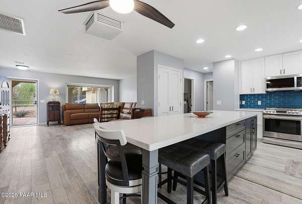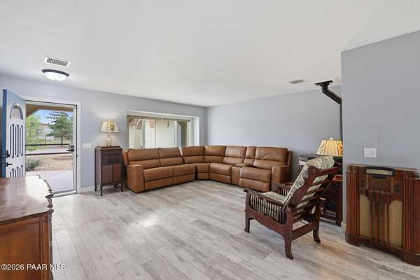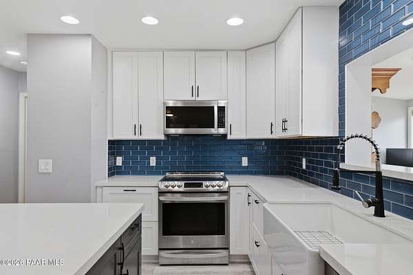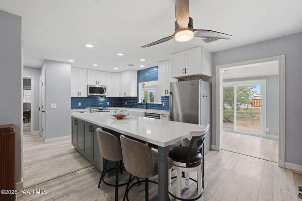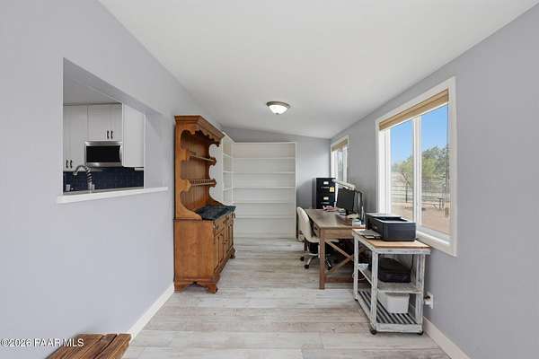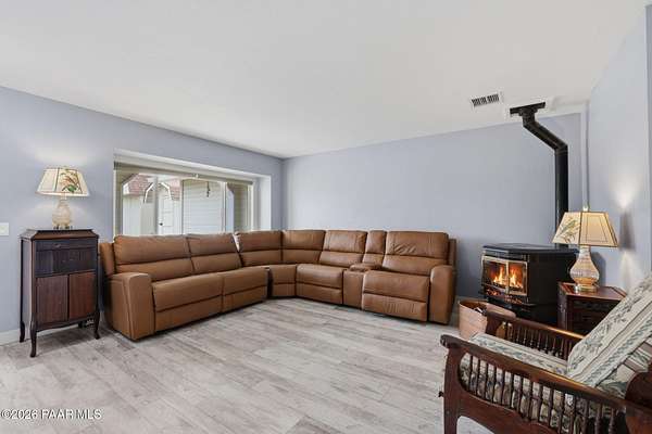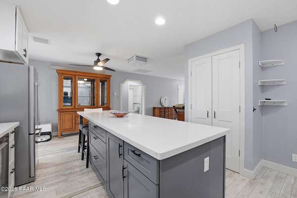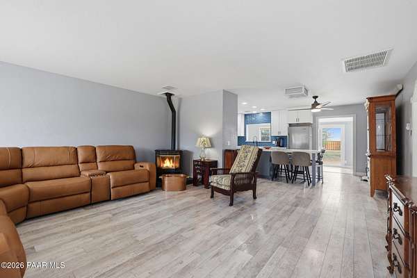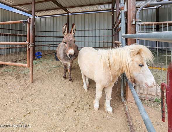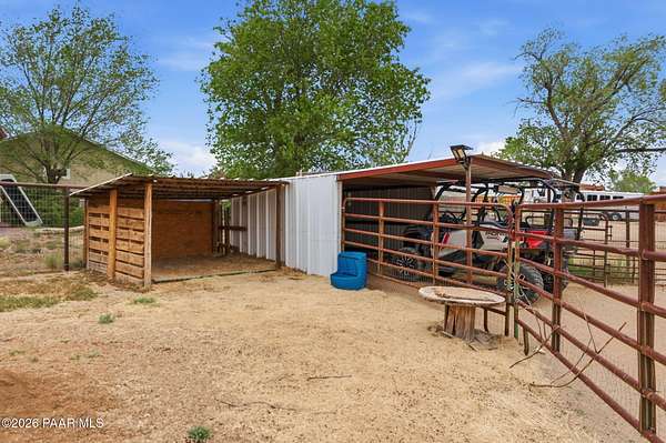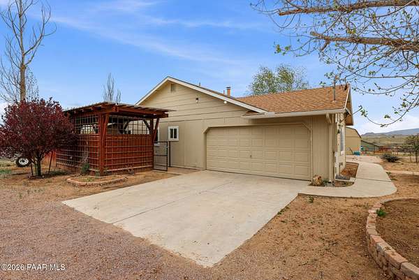 Granite Creek LANE Equestrian Retreat -- this super cute home delivers recent upgradesand equestrian living surrounded by trees and beautiful views... the kind of place that just feels right the moment you pull in. See the feature sheet in DOC TAB for a list of all the amenities. The redesigned kitchen features quartz countertops and a fabulous central island--the heart of the home--along with a farmhouse sink, soft-close cabinetry, motion-touch faucet, and newer appliances. Throughout, you'll find luxury vinyl plank flooring and a cozy great room with apellet stove that ties it all together.The split bedroom floor plan offers a primary suite and bath with dual farmhouse vanities, acustom tile walk-in shower, and a well-designed closet. Everyone LOVES an Arizona Room which adds extra flex space, while a spacious utility room and three pantries (yes, three) keep everything organized. The 2-car garage with built-in cabinets plus the outside storage sheds will meet all your your storage needs. Outside is where this property really goes to work. Fully pipe rail fenced and cross-fenced with no-climb. Set up with oversized stalls, tack room, wash area, hay storage, expansive turnouts, and room for your arena. Smaller run-in sheds handle chickens, goats, or minis with ease. Andthe best part? Ride straight out onto State Land and the Peavine Trail system--no trailer, no hassle. A strong production well with a 3 HP pump, dual pressure tanks, and 10 hydrants supports the property. You get a 30x12 workshop with a loft and power plus more storage in the pump house. A little dog run, RV parking, and built-in BBQ smoker give you the freedom to use your land the way you want. There is even a Koi Pond with one precious koi who has lived in the pond formany years. Top it off with a solar entry gate, newer roof (2020), and fresh exterior paint(2023). If you've been waiting for a place with space, function, and a little grit--in all the right ways--this is it. Cute, capable, and completely dialed-in... saddle up, bring the chickens and enjoy this gem in the Chino Valley countryside.