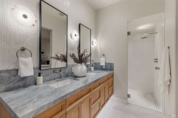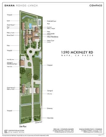 Set on five private acres at the end of a long gated drive, this newly constructed Napa Valley compound redefines modern wine country living. Collaboratively envisioned by architect Alan Page and Bette Abbott Interior Design and completed in October 2025 by renowned builder Vine Homes. The grounds encompass an impressive main residence with two attached garages, two guest houses, and two separate garages - one designed for the avid car collector or the ideal entertainment barn. Designed for grand-scale entertaining and relaxed wine country living, the expansive interiors open to a series of outdoor spaces that celebrate the region's signature indoor-outdoor lifestyle. Recreational amenities include a pickleball court, bocce court, fitness area, pool and spa, a covered pool lounge with an outdoor kitchen and bar, and a private trail that extends around the perimeter of the property. 1.5 acres of Cabernet Sauvignon vines and raised culinary gardens. An iconic residence of rare craftsmanship and vision, where every line, finish, and proportion reflects an unwavering commitment to design, quality, and technology. High-speed fiber optic internet, radiant floors, zoned AC, outdoor heaters, and warm floors in the covered patios and loggias.