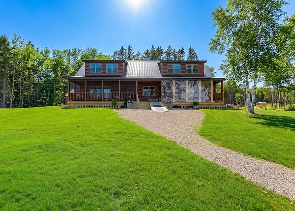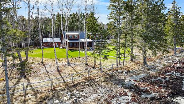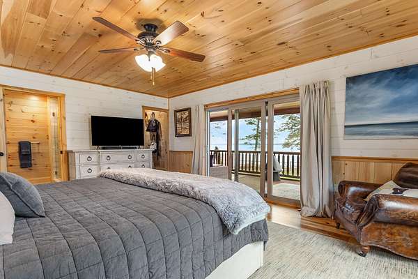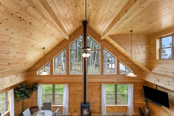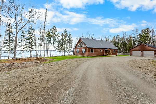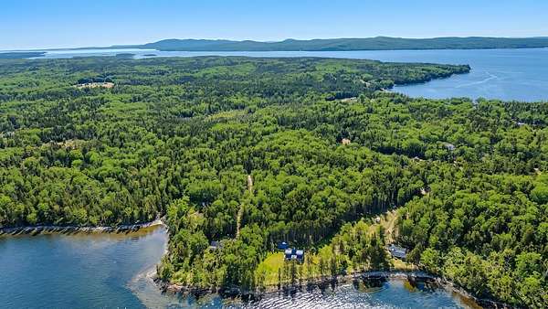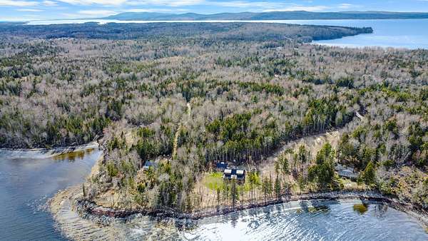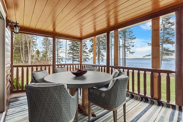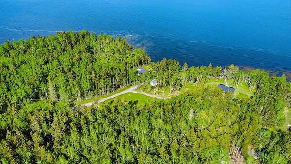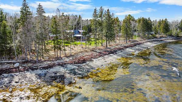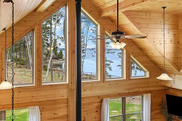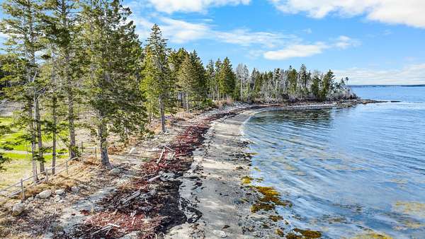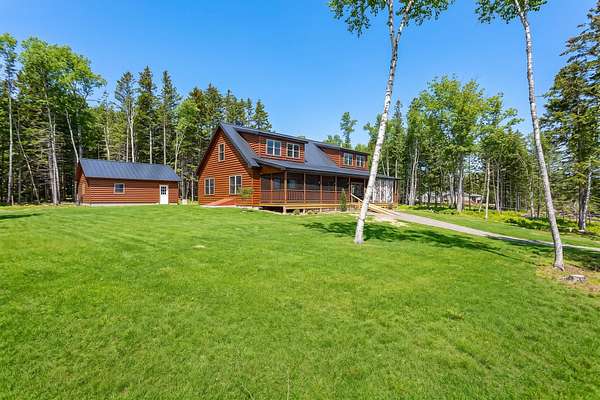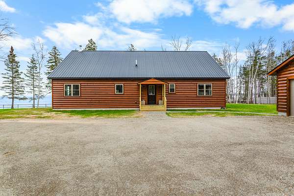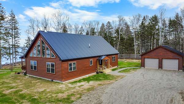 Set on the peaceful north end of Islesboro, this exceptional waterfront property offers a rare combination of privacy, modern construction, and effortless access to the shore. With 5.77 acres and 262 feet of open shoreline, you can enjoy one of the island's most sought-after features: direct, stair-free access to the water, allowing you to walk right from your yard to the beach. Built in 2025, this beautifully crafted log-style home offers 2,200 square feet of thoughtfully designed living space. Cathedral ceilings and a dramatic wall of windows fill the open-concept kitchen and living area with natural light, creating a bright, welcoming atmosphere that brings the outdoors in, and opens to a covered back porch facing the shoreline. The first floor features two spacious bedrooms, including a primary suite with a walk-in closet and sliding doors that open to a screened-in porch, the ideal spot to relax and take in the coastal air. Upstairs, a large third bedroom with its own bathroom offers a private retreat for guests or family. Tucked at the end of a long private road, the setting is both quiet and secluded. A newly built detached two-car garage adds practicality and convenience, completing this turnkey island retreat. Offered at 1.7M USD, this property is a rare opportunity to own a newly constructed waterfront home in one of Islesboro's most peaceful and private locations. For those seeking additional space or a multi-generational compound, there is also the option to purchase the full 13-acre offering, which includes a separate, well-maintained 4-bedroom, year-round home, creating a truly unique and versatile coastal estate.