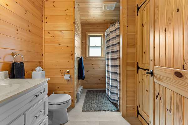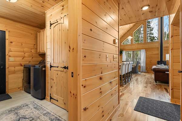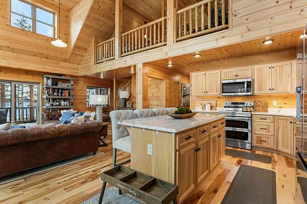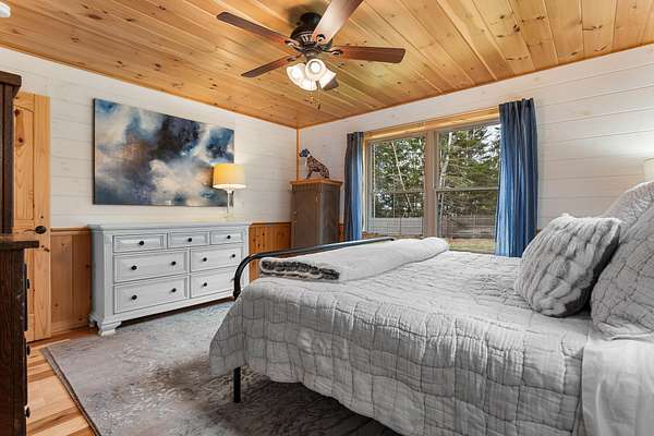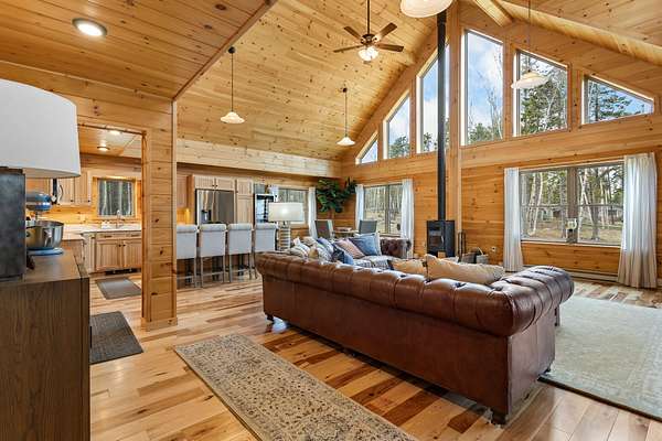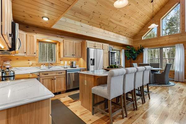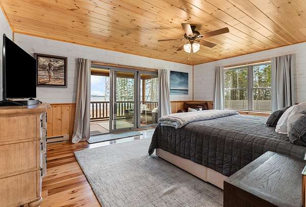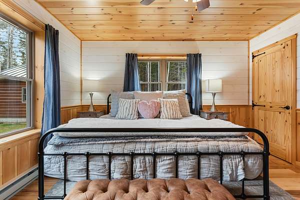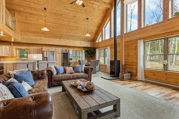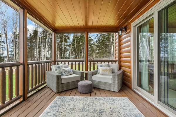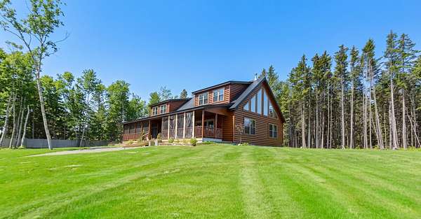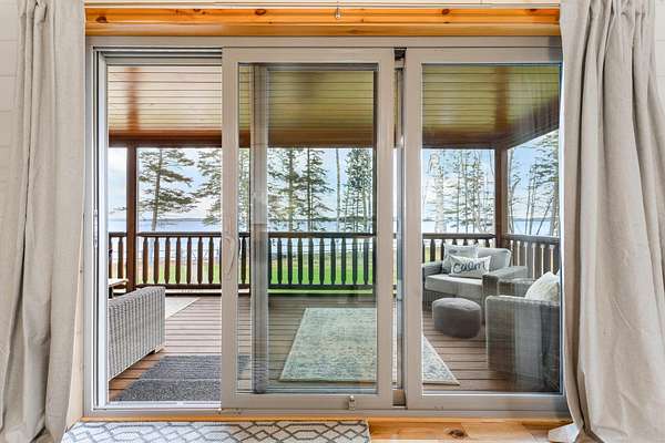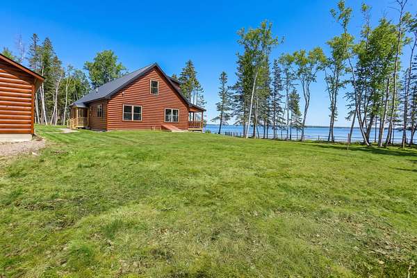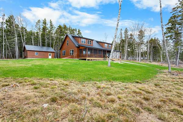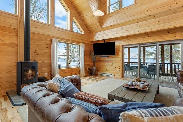 Set on the peaceful north end of Islesboro, this exceptional waterfront property offers a rare combination of privacy, modern construction, and effortless access to the shore. With 5.77 acres and 262 feet of open shoreline, you can enjoy one of the island's most sought-after features: direct, stair-free access to the water, allowing you to walk right from your yard to the beach. Built in 2025, this beautifully crafted log-style home offers 2,200 square feet of thoughtfully designed living space. Cathedral ceilings and a dramatic wall of windows fill the open-concept kitchen and living area with natural light, creating a bright, welcoming atmosphere that brings the outdoors in, and opens to a covered back porch facing the shoreline. The first floor features two spacious bedrooms, including a primary suite with a walk-in closet and sliding doors that open to a screened-in porch, the ideal spot to relax and take in the coastal air. Upstairs, a large third bedroom with its own bathroom offers a private retreat for guests or family. Tucked at the end of a long private road, the setting is both quiet and secluded. A newly built detached two-car garage adds practicality and convenience, completing this turnkey island retreat. Offered at 1.7M USD, this property is a rare opportunity to own a newly constructed waterfront home in one of Islesboro's most peaceful and private locations. For those seeking additional space or a multi-generational compound, there is also the option to purchase the full 13-acre offering, which includes a separate, well-maintained 4-bedroom, year-round home, creating a truly unique and versatile coastal estate.