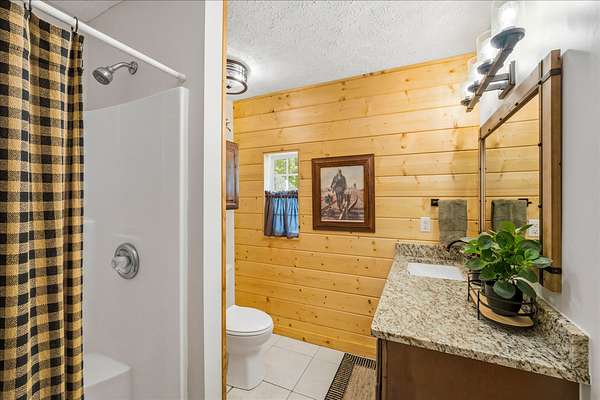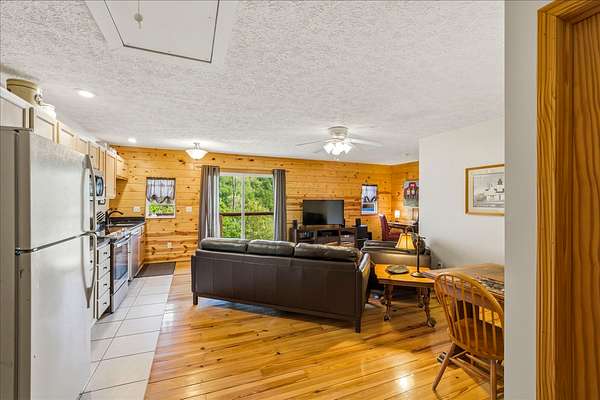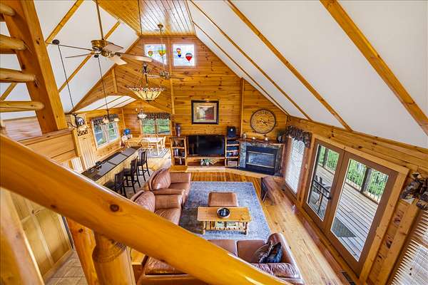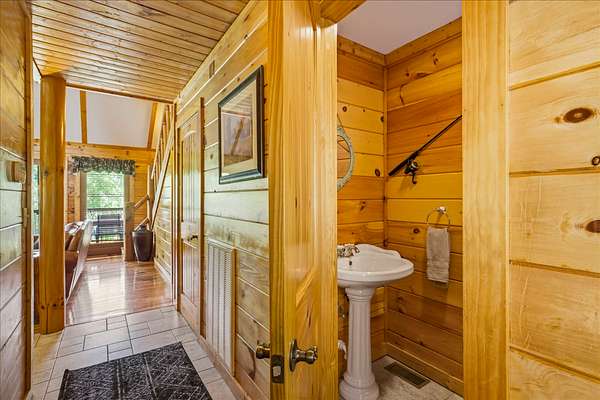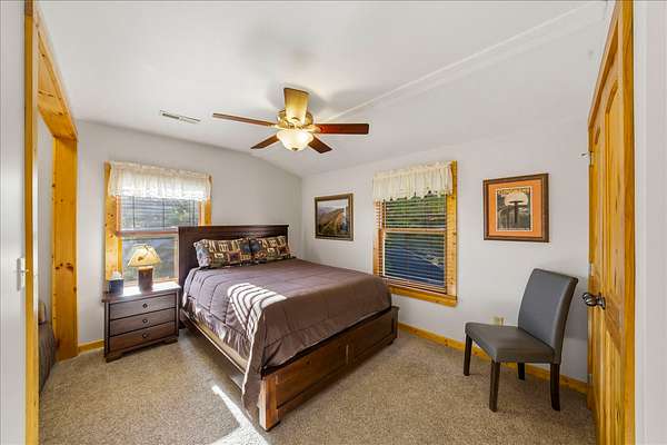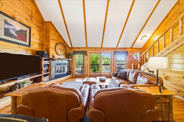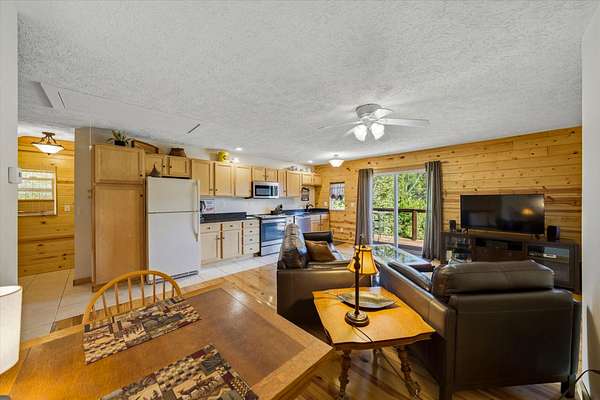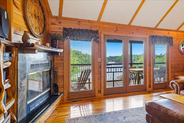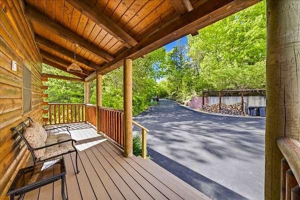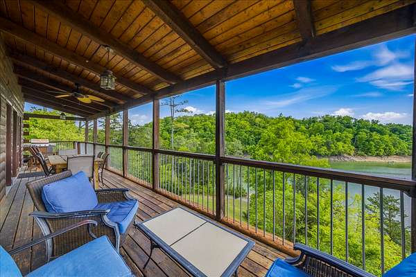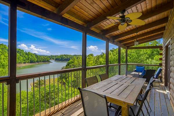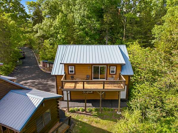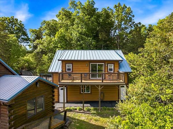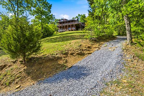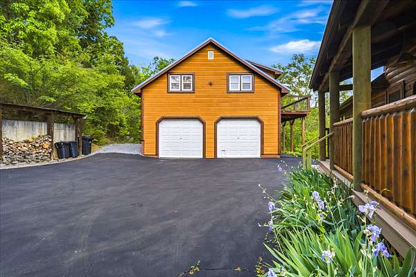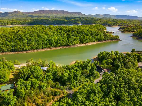 The exterior features a paved driveway, covered front porch, and rear deck space to enjoy the surrounding natural setting and lake views. Conveniently located just a short drive to Sevierville, Pigeon Forge, Gatlinburg, and the Great Smoky Mountains National Park.