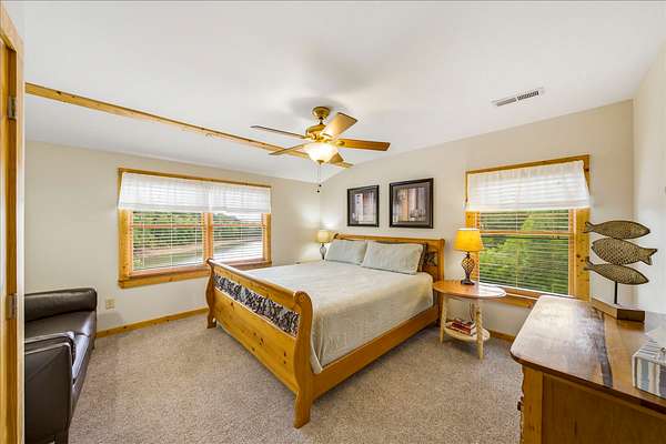 This property offers a rare combination of true lakefront access, private dock, additional living quarters, and short-term rental potential in a highly desirable location and all situated on approx. 4.54 acres of private land with deer, turkey and lakefront. This is a paradise!