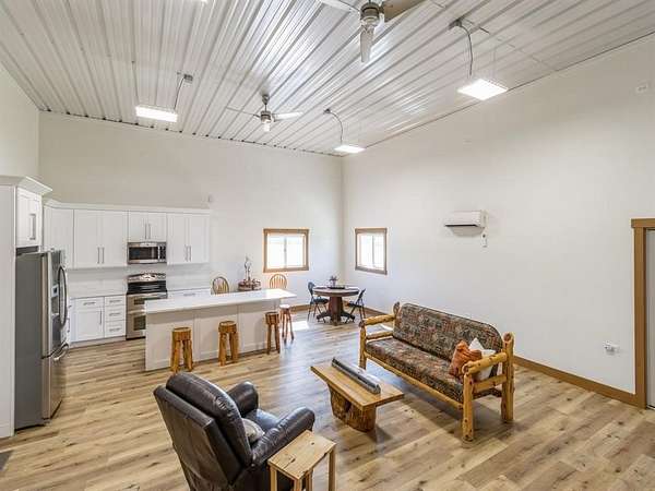 20-acre opportunity just 26 miles from Des Moines-perfectly crafted for those who value both outdoor adventure & smart income potential (more land available). This home is also great for snowbirds, VRBO, or full-time living. This home offers 2bd & 1 bath w/laundry & plenty of room to expand the living space. This property marries prime hunting terrain-with manicured trails, strategically placed deer stands, & the tranquil South River bordering the southern edge-with exceptional investment versatility. The pole barn is 80x50 & features in-floor radiant heat & upgraded living quarters (1200 sqft), including two bedrooms, a 3/4 bath, new cabinets, luxury vinyl plank flooring, & Amish Knotty Alder trim. An insulated, tinned, 1,000?sq?ft heated shop plus a sizable 40?*?50 concrete bay offer the ideal foundation for workshops, rentals, or storage. Investors will appreciate its appeal for 1031 exchanges, VRBO income, or land leasing, especially with additional potential to lease hunting rights-a passive revenue stream that often outpaces traditional agricultural leases. Nestled just off pavement on a peaceful dead-end, this property offers both seclusion and accessibility-a true blend of recreational sanctuary and investment-grade land. Call today for your private showing. The land is in the WRP program. This means the land cannot be put into production or used to raise animals (room for chickens and small animals in the buildable area). The land is perfect for trail riding & hunting.
