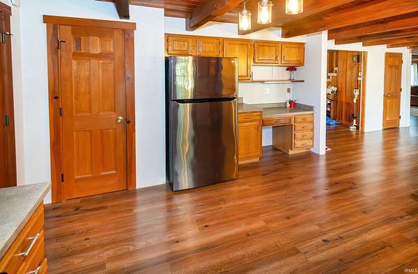 - Breakfast Bar, Ceilings-Beamed, Closet(s) Walk-In, Deck Open, Dishwasher, Home Warranty Included, Kennel, Main Floor Laundry, RV Parking, Refrigerator, Skylight(s), Workshop