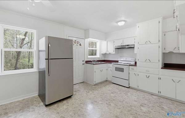 Charming 2 bedroom/possbile 3, 1 bath home situated on approximately 3+- acres of private land. Extra septic tank for addition living quarters for mobile home. (Not restricted). UPGRADES include, New wall heaters, fresh paint, new lighting and ceiling fans, new stove, new wiring, newer windows, hardwoods, and a nice storage building. This property offers a full basement, providing ample storage or potential for additional living space. Washer dryer hook-ups on main level and in basement as well. Plenty of room for children to play, gardening, or expansion. Ideal for those seeking space and versatility. Conveniently located one Hwy 168 just within minutes of Boaz, Crossville, or Albertville.