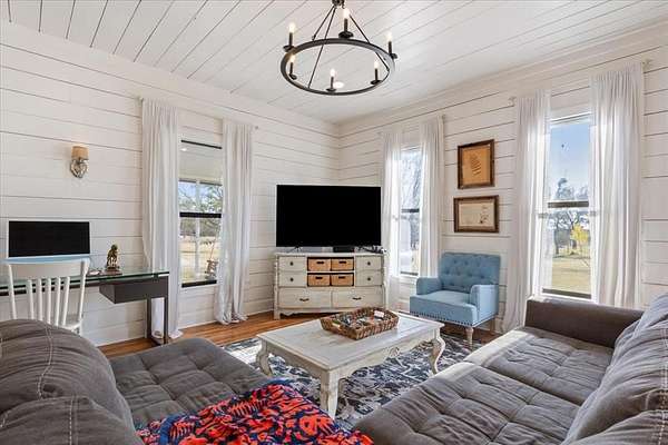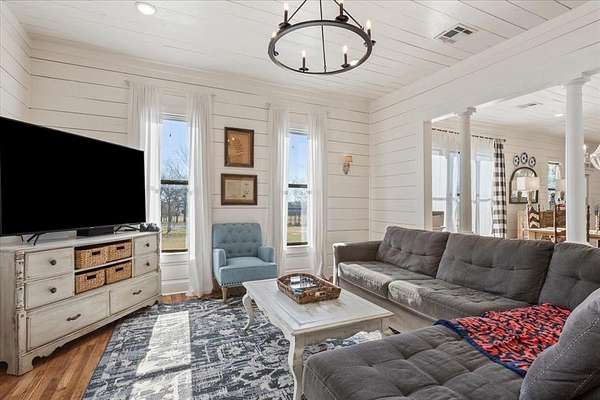 Imagine a 1928 Craftsman style home, completely renovated to modern standards with the comfy serene feel of the best of days gone by and you might just imagine this home. Now put that home on 8.25 acres on a paved road surrounded by acres of open fields and the wildlife and peacefulness that brings and you are home. Open living spaces. Brand new solar powered custom gate and metal fence, new oversized equipment garage, new water heater (2025), new hot tub, new cowboy pool, new chicken coop with 8 hens, new front and back porch screens, new Texaco sign at entry. House was completely updated 2021-2023 (roof, siding, foam insulation, plumbing, septic, new well, new HVAC, appliances, etc.) while keeping original hardwood floors, shiplap, and charm. Screened in back porch. New covered parking and shop-storage building. Water well. Fruit trees. Plenty of room for your chickens or horses or whatever your heart desires. Honey Bees provide Agricultural Tax Exemption (2 of the 5 years required have been completed) and fresh honey too! No restrictions so you make the rules here. Seller is willing to include all the furnishings with a good offer. Even the tractor and toys aren't out of the question, so set up your showing today!