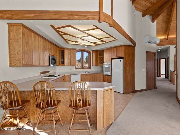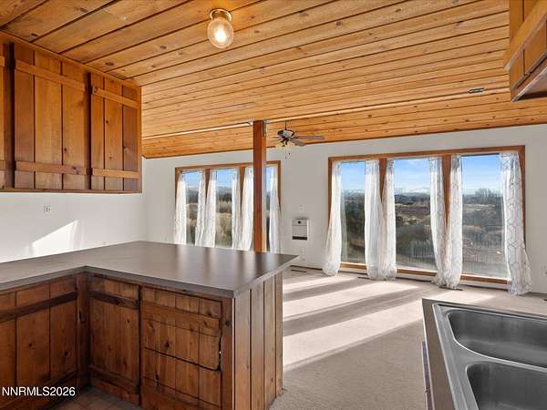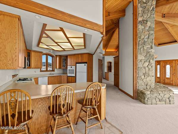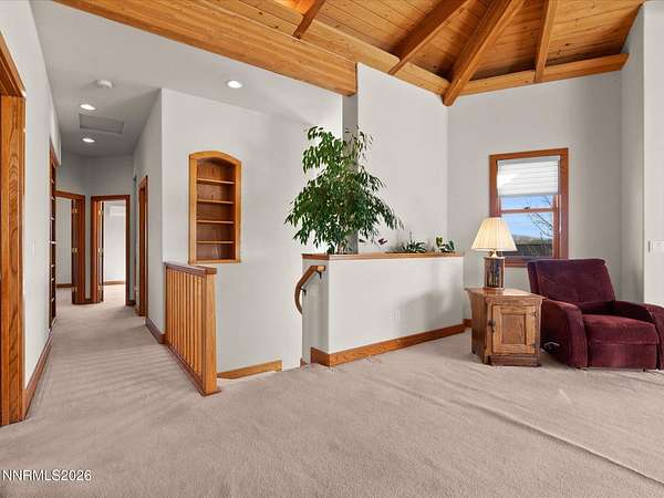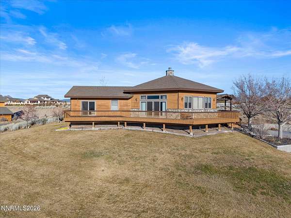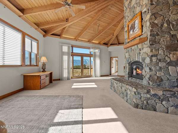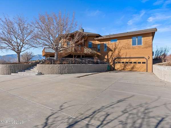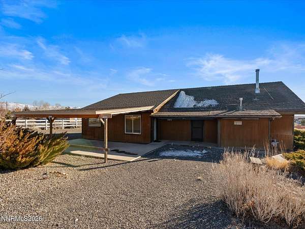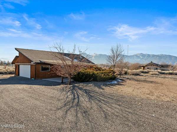 If you're seeking the perfect blend of comfort, space, and custom craftsmanship, this stunning Gardnerville property delivers. Situated on 5.36 acres, this corner lot features a beautifully designed main residence, a spacious workshop/barn, and a charming guest house-ideal for multi-generational living, hobbies and more. The 2,538 SF main home offers 3 bedrooms, 2 full bathrooms, and an open-concept floor plan perfect for everyday living and entertaining. Custom vaulted beam tongue-and-groove ceilings, expansive windows, and sliding glass doors fill the home with natural light and showcase breathtaking Sierra Mountain views. The kitchen is thoughtfully designed with custom cabinetry, solid surface countertops, deep pull-out drawers, and a double sink. The owner's suite features vaulted ceilings, stunning views, a large walk-in closet with custom built-ins, and a spa-like bathroom with a jetted soaking tub, walk-in shower, and dual vanity. Two additional spacious bedrooms, a full bath, an office/mud/laundry room with custom cabinetry and built-in desk complete the main home. The approx. 1,944 SF workshop/barn includes three roll-up doors, a half bath, loft storage, and ample space for RV parking. The approx. 600 SF guest house offers a loft, 3/4 bath, attached garage, and carport. A tree-lined driveway welcomes you with mature cherry, apple, peach, and plum trees, complemented by lilac bushes and landscaped grounds. With plenty of room for animals and endless opportunities for outdoor recreation, this property is ideal for walking, biking, or horseback riding. Conveniently located near Tahoe, Reno, Virginia City, Genoa, and Jobs Peak, this exceptional property offers both privacy and accessibility.
