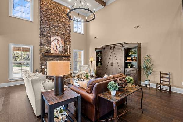 Gorgeous custom-built all-brick home featuring 4 bedrooms, 3.5 baths, and a 3-car garage. Situated on 10 acres of beautiful countryside (to be surveyed off - flags are in place to provide a general boundary line), the property offers wooded areas for a true country feel and convenient location on a private, dead-end road! Meticulously designed with quality finishes and smart-home automation, whole house music system, custom home theatre/media room, smart-lighting, security system, thermostats and commercial grade wireless home network. Smart oven in kitchen can be controlled by an app. The home theatre and audio system are negotiable and MUST be written in the contract, in order to remain. Home is also pre-wired for exterior security cameras. Inviting front porch with arched double doors opens to a 2-story foyer and living room with stacked- suite offers a spa-like bath with dual vanities and tile shower. The kitchen features granite counters, rich cabinetry, a large island with seating, beverage station, and stainless appliances. Additional highlights include a private office, spacious utility room with sink and built-ins. Enjoy outdoor living on the covered porch with tongue-and-groove ceiling, with stacked-stone fireplace with gas line, and gas line on patio for gas grill connection. Garage has a utility sink and plumbing connection for future pool bath. Property includes an outdoor fireplace area as well as gravel pad, ready for future barn or workshop to be built. 10 minutes to South Murfreesboro for all the amenities. Less than 15 minutes to I-24.