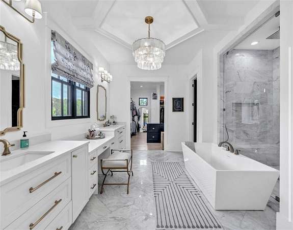 - Crown Molding, Double Vanity, Entrance Foyer, His and Hers Closets, Walk-In Closet(s)
