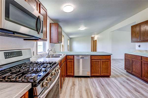 Welcome to a place where you can finally breathe a little deeper. This updated 4-bedroom, 2-bath home sits on 5 wide-open acres, giving you the space to spread out, slow down, and enjoy the simple things; sunsets, quiet mornings, and room to pursue the lifestyle you've been dreaming about. If you've been looking for a property with room for horses or hobby animals, you'll appreciate the existing stalls and the freedom this land offers. Inside, the home feels fresh and inviting with brand-new flooring, updated paint inside and out, new siding, and a bright, open layout that makes everyday living feel easier. The kitchen is the heart of the home, featuring newer stainless steel appliances (including a brand-new dishwasher) and updated countertops. Just off the main living area, a brand-new deck offers the perfect spot to start your day with coffee or wind down in the evenings with Colorado skies as your backdrop. Recent upgrades, including a new roof and gutters in 2023, new siding and composite deck, Fresh paint on the interior and exterior of the home all in 2025. A private well, septic system and propane add peace of mind and help keep utility costs lower. If you've been waiting for a home that blends modern updates with true country living, this one is ready when you are. Come see what makes this property special.