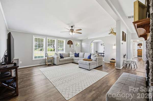 Escape to peaceful country living with this beautifully updated 3-bedroom, 2-bath home set on nearly 15 acres of scenic land, just minutes from desirable Historic Gold Hill. Inside, you'll find a split floor plan, spacious bedrooms with custom closets, and stylish updates throughout. Neutral colors create a warm and inviting atmosphere, while the cozy fireplace in the living room makes the perfect spot to relax. Step outside and enjoy everything this property has to offer-from a fully fenced backyard to a 1-acre fully stocked pond including Crappie, Bream, and Bass. Relax on the covered back porch while taking in the peaceful surroundings. Outdoor enthusiasts will love the privacy and hunting land, complete with a box stand already in place. Additional features include a carport, storage shed, and ample space to fully embrace country living. This home truly has it all, schedule your showing today! *USDA Eligible* Please note the property line picture is inaccurate and will be updated- this property also includes the parcel to the left of home as well as everything else outlined.