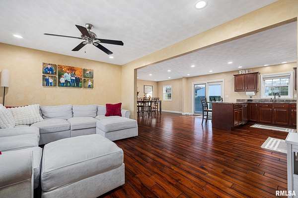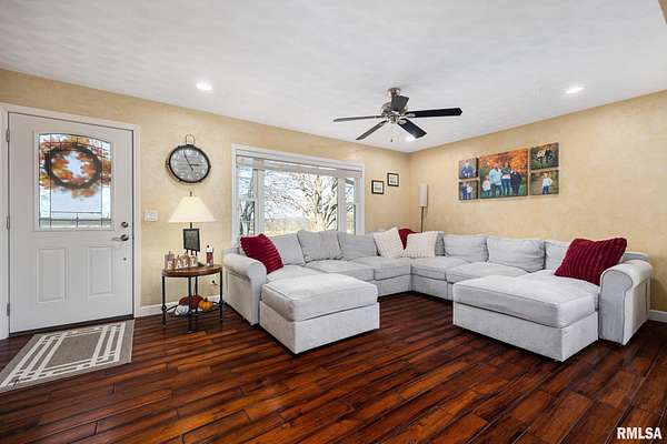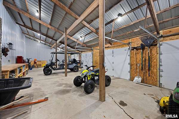 Hobby Farmers take a look! Absolutely breathtaking 4-bedroom, 2.5-bathroom raised ranch on 5 acres of land! Beautiful hardwood flooring is laid throughout the open-concept living room, kitchen, and dining room. There are plenty of entertainment spaces in this home! The laundry room is located on the main floor, making it convenient to take loads with you to the 4 main floor bedrooms. You'll fall in love with the oversized primary bedroom, walk-in closet with shelving/drawers, and private full bathroom. The primary bedroom has access out to the spacious back patio. The luxurious tiled primary bathroom features a large bathtub perfect for soaking, double sinks, and a HUGE walk-in shower that you'll never want to leave! The other 3 bedrooms all have great closet space and are carpeted. The main floor full bathroom features double sinks and closet storage. Turn the basement into your own dream basement with ample space, a wood-burning fireplace, and a utility storage room. The large, oversized 2-car garage is attached and can be accessed from the basement. It even has its own half bathroom and plenty of extra space for storage, a workspace, or whatever your heart desires! Spacious outbuilding in the back features horse stalls and side storage with garage doors. This is your DREAM HOME! Schedule your private tour today and make it your own.