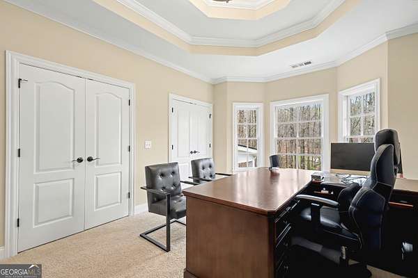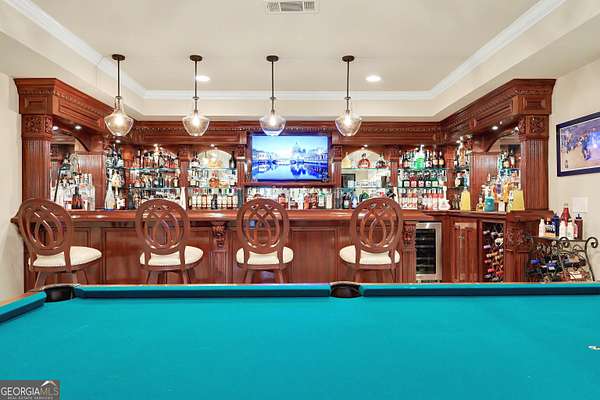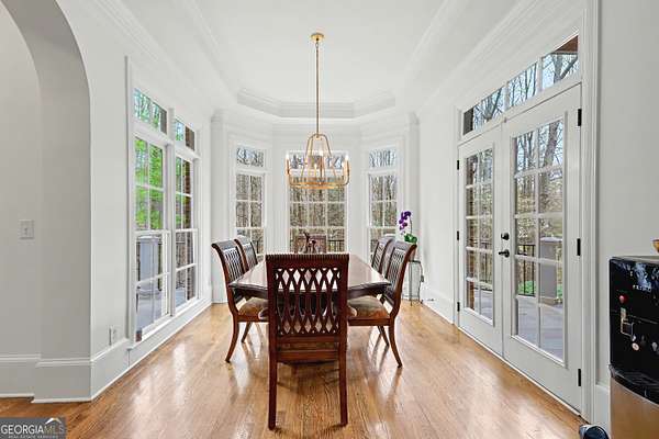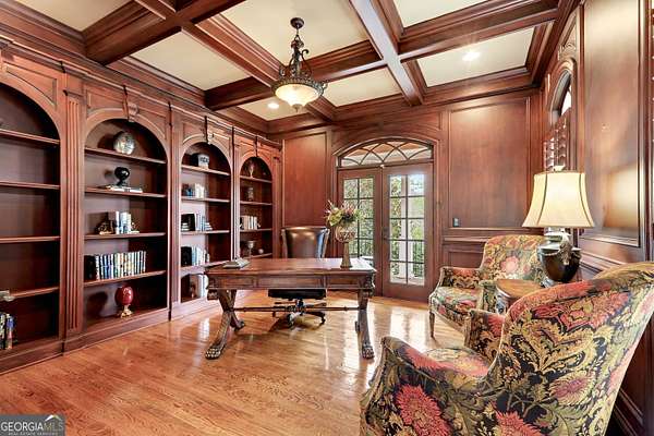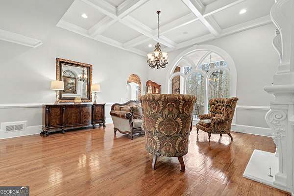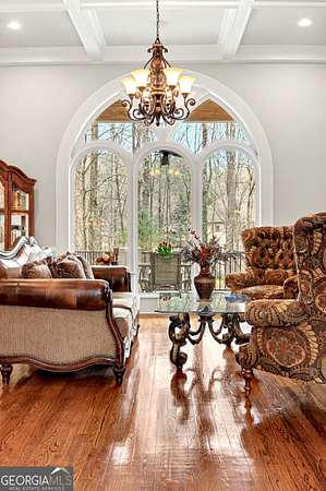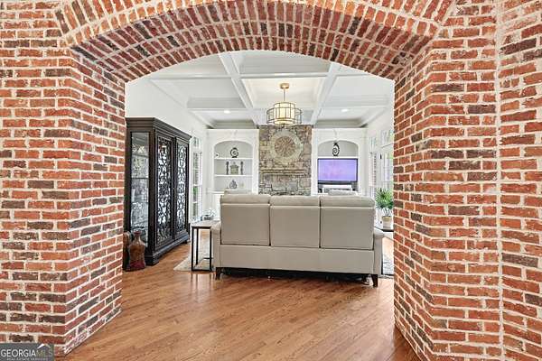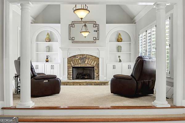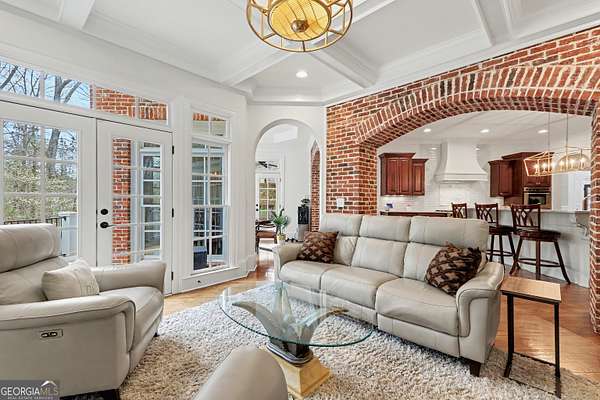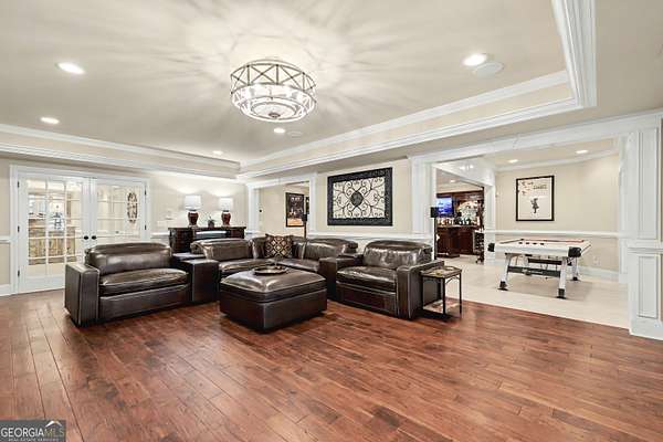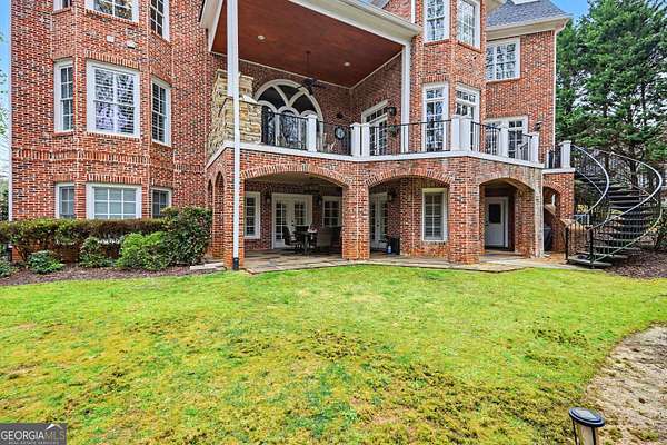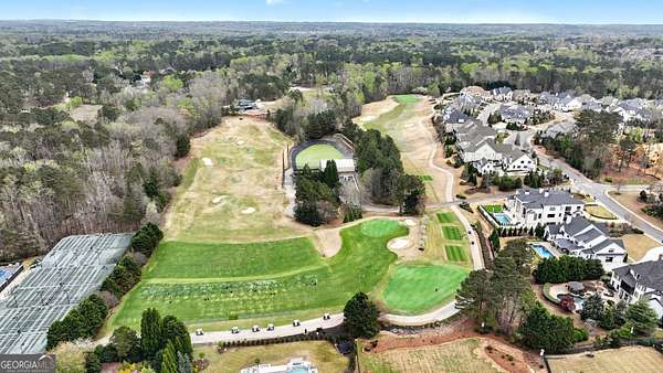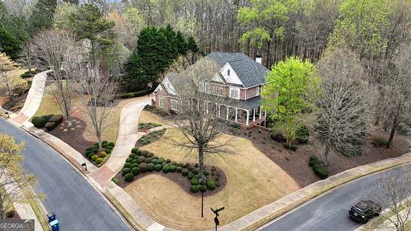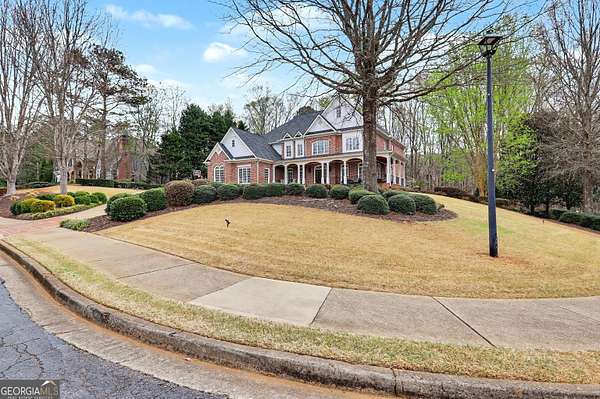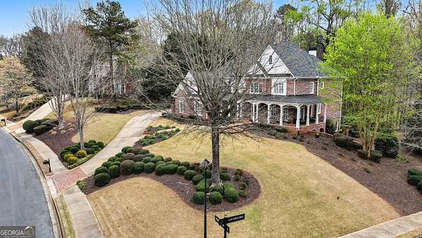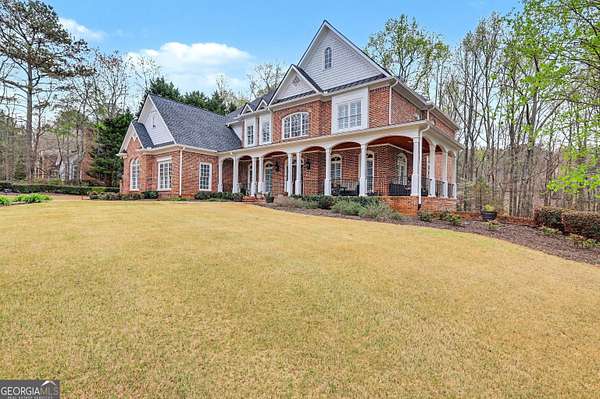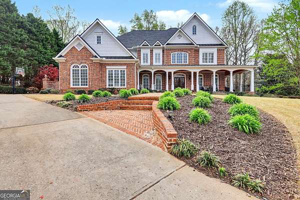 Located in the prestigious The Manor Golf & Country Club, this exceptional estate sits on 1.69 acres and offers an impressive blend of luxury, space, and thoughtful design. Featuring 7 bedrooms, 6 full bathrooms, 2 half bathrooms, a fully finished terrace level, and 4 fireplaces, this home delivers an elevated living experience both inside and out. The exterior showcases four-sided brick construction with cedar shake accents, an oversized 3-car garage, a wrap-around porch, and beautifully maintained landscaping that creates stunning curb appeal. Step inside to a grand two-story foyer accented by beautiful hardwood floors. To the right, a private study/office features a wall of built-ins and French doors leading to the porch. To the left, the elegant formal dining room opens to a convenient butler's pantry. The living room offers an open and inviting space with an extra-large custom window, 13-foot coffered ceilings, and a striking limestone fireplace. The chef's kitchen is a true centerpiece, showcasing glass-front cabinetry, quartzite countertops, a 6-burner gas range, double ovens, an oversized island, hidden refrigerator, hidden walk-in pantry, and a mudroom. The adjoining keeping room, highlighted by beautiful brick arches, adds warmth and character. The breakfast room overlooks the private backyard and opens through French doors to a covered patio featuring a stone fireplace, grill, and electrical connections for a TV or sound system-perfect for indoor-outdoor living and entertaining. Main Level: Ensuite guest bedroom Upper Level: Oversized primary suite with private sitting area, fireplace, and vaulted ceiling/Spa-inspired bath with dual vanities, oversized walk-in closet, and private laundry/Three additional ensuite bedrooms/Media room with wet bar and built-ins Terrace Level: Ensuite bedroom plus additional bedroom with private exterior entry/Kitchenette with dining space and patio access/Custom mahogany bar featuring dual temperature wine refrigerator, icemaker, dishwasher, and undercounter refrigeration/Game room and family room, both opening to a spacious rear patio/Ample storage space Community Amenities: Residents of The Manor enjoy a lifestyle of living, connecting, and playing with access to a Tom Watson-designed golf course, indoor and outdoor pools, tennis courts, fitness facilities, and a clubhouse offering fine dining and year-round social events. The Manor is ideally located near GA 400 and just minutes from the premier shopping, dining, and entertainment of Halcyon, Avalon, Crabapple, and downtown Alpharetta.