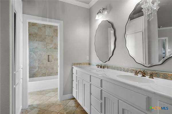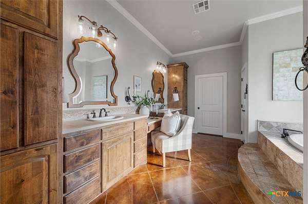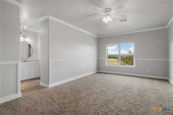 - Attic, Bookcases, Built In Features, Cathedral Ceilings, Ceiling Fans, Chandelier, Crown Molding, Dining Area, Double Vanity, Game Room, Garden Tub Roman Tub, High Ceilings, Home Office, Main Level Primary, Multiple Living Areas, Open Floorplan, Primary Downstairs, Pull Down Attic Stairs, Recessed Lighting, Separate Formal Dining Room