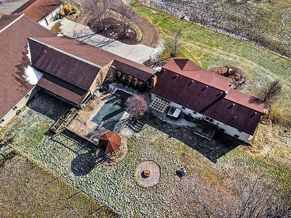Welcome to Iron Horse Ranch! This stunning ranch home set on 16 private acres is a true dream for horse enthusiasts or anyone who loves the outdoors. The home's open and inviting design is filled with natural light and thoughtful details throughout. At the heart of the main floor is a spacious kitchen with views into the living area and out across the picturesque property. A large main-floor den offers space to work or create. The primary bedroom features private backyard views, a large bathroom, walk-in closet, and direct access to the porch. The main floor also offers three additional bedrooms and bathroom. The large mudroom connects the home to the heated four stall garage that then leads into your equestrian barn. With 13 horse stalls, 60x132 indoor riding arena, viewing area, 100x150 outdoor arena, inground pool, two additional outbuildings and much more, this equestrian facility has everything you need!