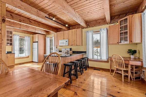 Two Unique Homes on 16.5 Acres Near Okemo Mountain Resort and Other Outdoor Recreation Opportunities! Discover an exceptional Vermont retreat just 10 minutes from Okemo Mountain Resort--featuring two distinctive homes on 16.5 private acres in Mount Holly. Surrounded by forest, open meadows, and a peaceful stream, this property offers the perfect mix of natural beauty and year-round adventure. The main home exudes Vermont charm with natural wood interiors, exposed beams, and a striking stone fireplace. With 3 bedrooms and 2 full baths, it features a granite kitchen, open living area, and large deck ideal for soaking in mountain views. A new heat pump forced-air system adds modern efficiency, and the home is offered fully furnished for a turnkey move-in. The newly finished guesthouse, once a garage, is now a modern 1-bedroom, 2-bath residence with spacious living areas, a kitchen, dining space, and raised deck. Unfurnished and ready for your vision, it's perfect as a rental, guest suite, or creative retreat. Enjoy access to nearby snowmobile trails, hiking paths, and all-season recreation--just minutes from Okemo's ski slopes. Whether you live in one home and rent the other or create your own Vermont sanctuary, this rare Mount Holly property combines comfort, flexibility, and an unbeatable location.