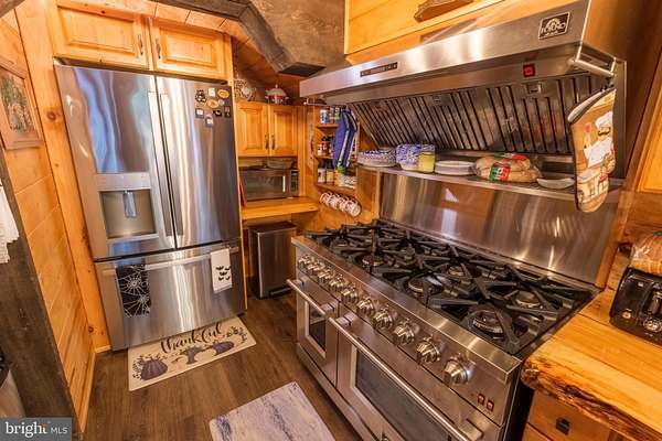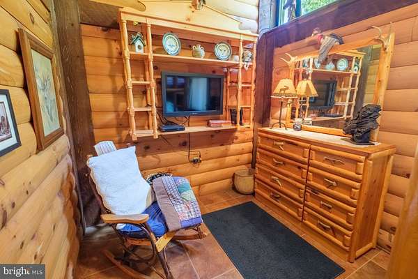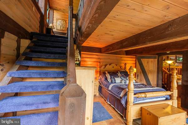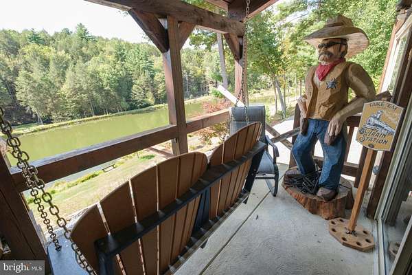 Hunting or Recreational Retreat! Tucked at the end of a quiet lane in Frenchville, this 4-bedroom, 3 full/2 half-bath 3500 sq ft timber-style cabin is the Pennsylvania camp you dream about-remote, private, and turnkey. Set on 10 wooded acres with a shimmering pond, the home blends rustic warmth with modern self-sufficiency: an independent generator hut for electric, propane tanks for the gas range & oven, a private well for water, and a septic system for the baths and showers. Inside, vaulted wood ceilings, exposed beams, and a wood stove anchor multiple living areas. A generous cook's kitchen and live-edge dining space open to porches and decks that frame long water views. The upper suite features dual sliders to a covered balcony-perfect for morning coffee above the pond. Spread out in four true bedrooms, three full baths, two half baths, laundry, and flexible hangout spaces for big groups.