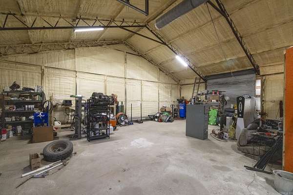 Located at 1595 N Elm St, this versatile commercial property offers an excellent opportunity for investors or owner-users seeking proximity to major industrial operations. The property is situated directly next to the Georgia-Pacific Mill and near the EDCC new transload rail facility, providing strong logistical advantages and long-term demand drivers. The metal building features a large open-span interior with concrete floors, high ceilings, spray-foam insulation, and bright overhead lighting, making it ideal for warehouse, shop, light industrial, storage, or service-based operations. A roll-up door allows easy equipment access, while framed interior areas offer flexibility for office space or additional build-out. The property also includes a finished kitchenette and bathroom for employee or operational convenience. Positioned on a level lot with gravel parking and easy road access, the site benefits from its industrial-adjacent location with expansion potential. This is a solid investment opportunity in a proven industrial corridor with strong infrastructure and nearby rail and manufacturing support.