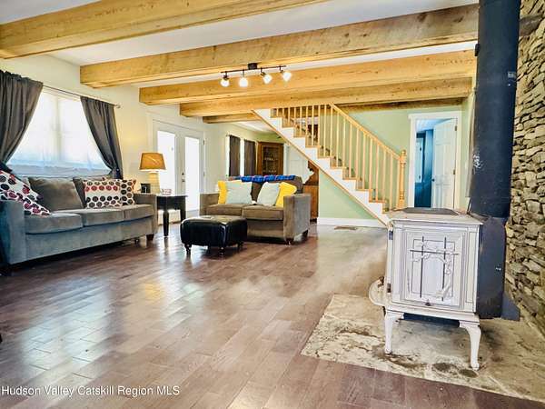 Charming Catskills Home on 20+ Acres in East Durham, NY. Discover your dream escape in the heart of the Catskills! This spacious 3-bedroom, 2-bathroom home in East Durham sits on an expansive 20+ acre lot, offering unmatched privacy and endless possibilities. With an additional 4th room perfect for a kid's bedroom or a creative office/art studio, this home is as versatile as it is inviting. The master suite boasts a private deck, ideal for morning coffee or evening relaxation out back. Step inside to an updated open-concept kitchen and living room, designed for seamless flow and modern living. Cozy up by the charming wood stove on chilly Catskills nights or entertain on the massive wrap-around deck and sprawling lawn-perfect for BBQs, family games, or lounging in Adirondack chairs around the firepit under starry skies. The vast 20-acre lot offers incredible potential: subdivide and sell parcels for a strong return on your investment or keep it all for ultimate seclusion and privacy. An extra foundation behind the house is ready for a garage, barn, or custom addition, adding even more value. Whether you're seeking a primary residence, a vacation getaway, or a lucrative income property, this home delivers. Perfectly located just minutes from the legendary Blackthorne Resort and the thrilling Family Fun Zoom Flume Water Park, and only 20 minutes from both The Windham Mountain Club and The Hunter Mountain Resort, this property is perfect for nature lovers and a prime spot for rental income. Don't miss this rare opportunity to own a slice of Catskills paradise with limitless potential!