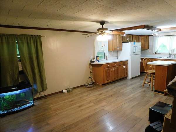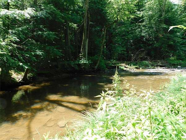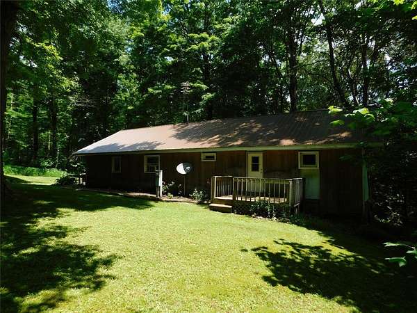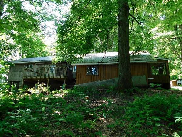 Escape to peace and privacy with this home nestled in the woods situated along side Cussawago Creek on a 13-plus-acre lot. If you are an outdoor lover, a sportsperson, or just don't want to see any neighbors, this might be the home for you. This 3 bedroom 1 bath home features a newer steel roof, open concept floorplan and oversized living room. Enjoy morning coffee on the rear patio overlooking the mature woods , valley, and creek below. Carport, 2 storage sheds, and an additional storage building add to the flexibility of this listing. Tons more area to explore and roam with State Game Lands just across Route 98.