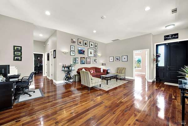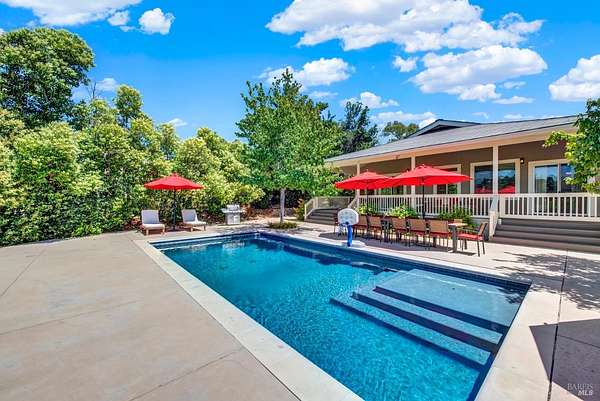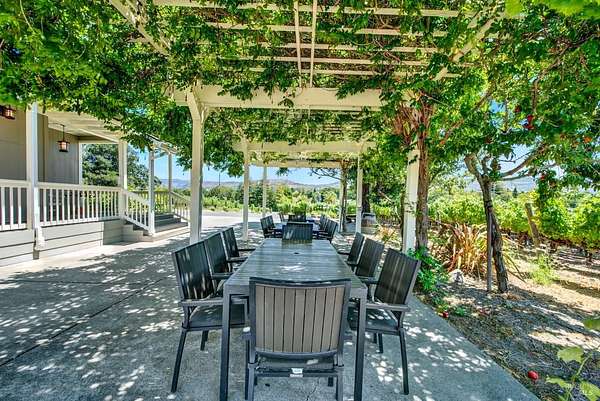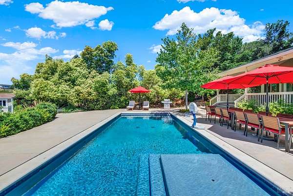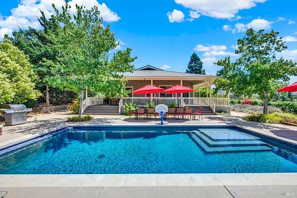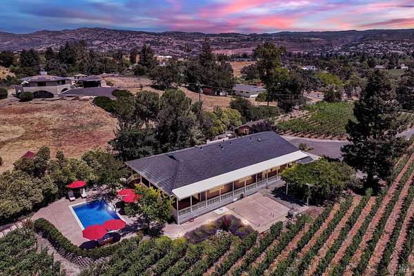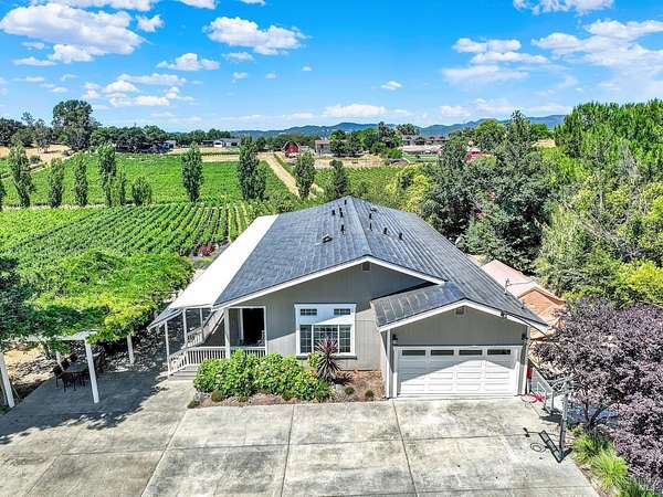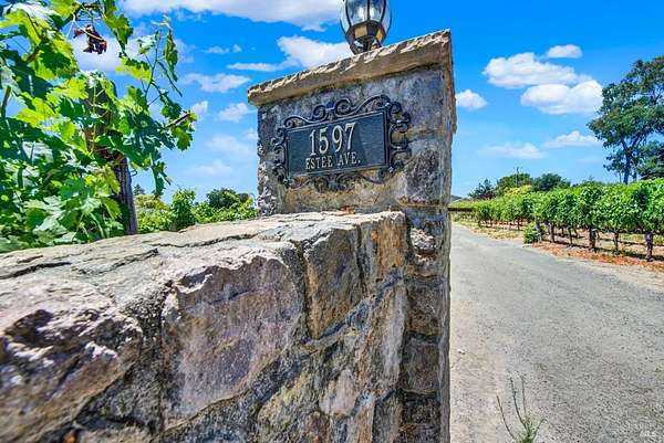 Welcome to 1597 Estee Avenue, an exceptional East Napa retreat set on over 2.5 acres with breathtaking vineyard views and the perfect blend of comfort, style, and function. This expansive single-level home offers over 2,600 square feet of beautifully updated living space, featuring rich Brazilian cherrywood floors, a chef's kitchen with a Viking gas range, center island with bar seating, and spacious living areas ideal for entertaining. The property is home to approx 1.66 acres of Cabernet Sauvignon vines, creating a truly immersive wine country experience right in your own backyard. Enjoy peaceful mornings or golden hour evenings on the oversized porch overlooking the pool and vines, or take a dip in the in-ground pool just steps away. The home offers 3+ bdrms/2 baths, indoor laundry, central heating and air conditioning, a gas fireplace, and modern energy efficiency with an owned Tesla solar roof and two backup Tesla Powerwalls. A 2-car attached garage is complemented by an additional detached garage, along with plenty of space for parking extra vehicles, equipment, or recreational toys. Private yet conveniently located near Silverado Country Club and accessible to Silverado Trail, this East Napa Valley property offers the ideal opportunity to experience Wine Country living