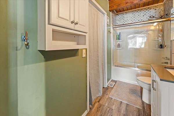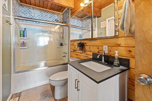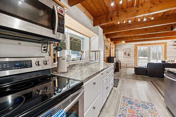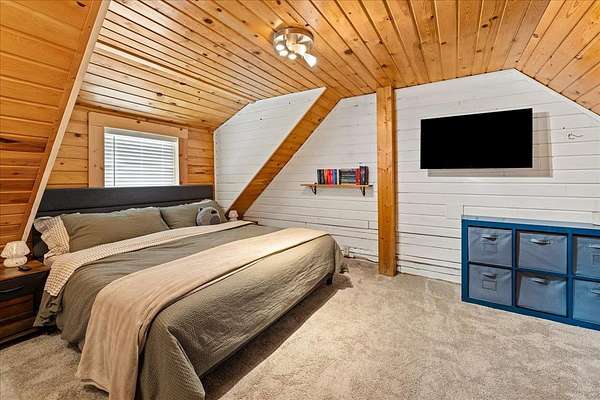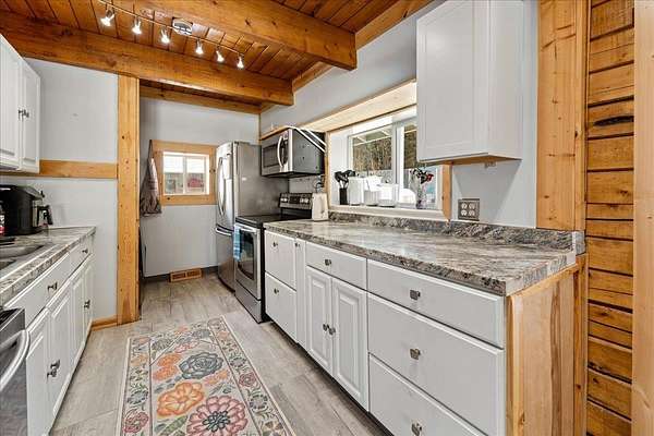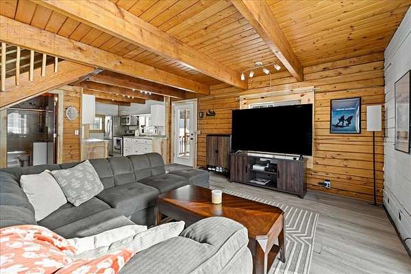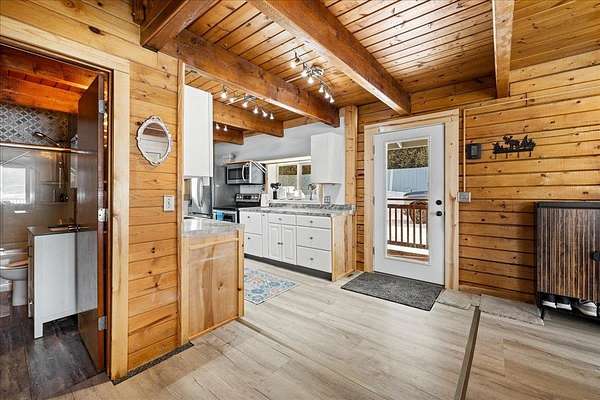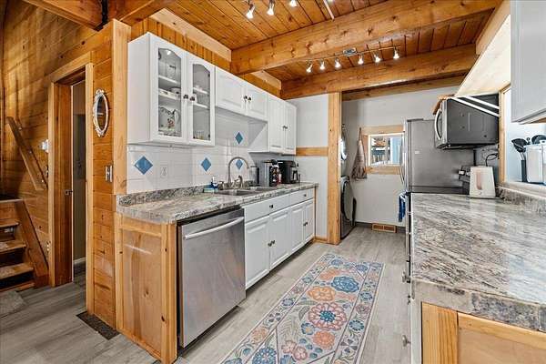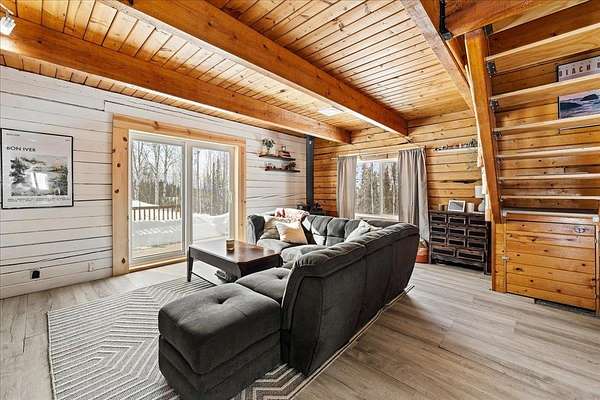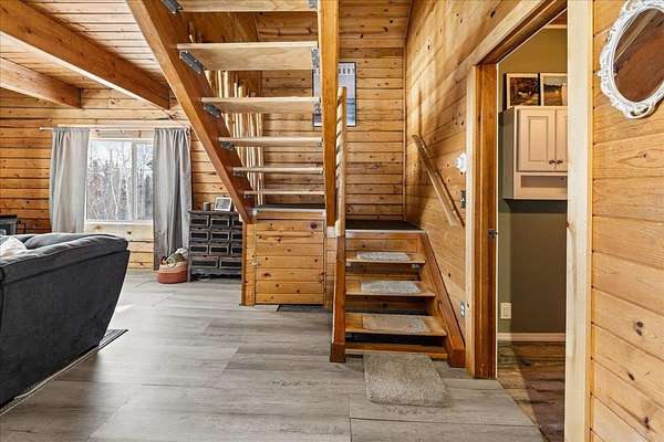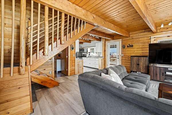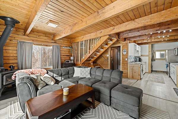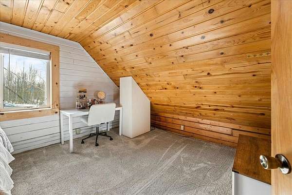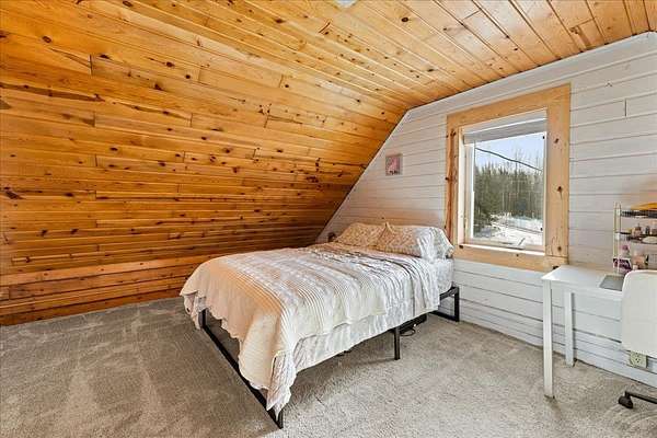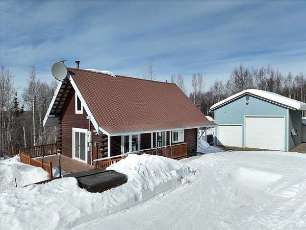 Est $1,940/moAdorable well kept 2 bed/1 bath log home with a large detached shop/garage. The main floor has the light and bright kitchen and cozy living room with a new wood stove. Laundry and bathroom are on the main floor as well. Upstairs has the two bedrooms. Outside enjoy the hot tub, deck, garden area and well taken care of lawn. The garage has plenty of room for vehicles or workspace.