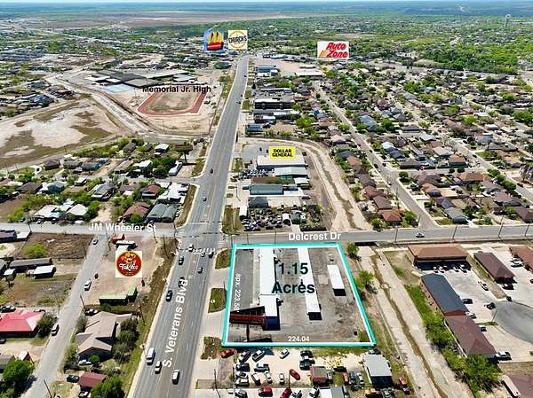 Est $7,584/moCorner commercial property located at S. Veterans Blvd and Delcrest Drive. The site benefits from excellent visibility and accessibility along one of Eagle Pass' primary commercial corridors. Surrounded by established residential neighborhoods, the property offers strong customer demographics and consistent traffic flow. The site currently operates as a car wash and presents a redevelopment opportunity for neighborhood retail, medical office, daycare, or service-oriented commercial uses.