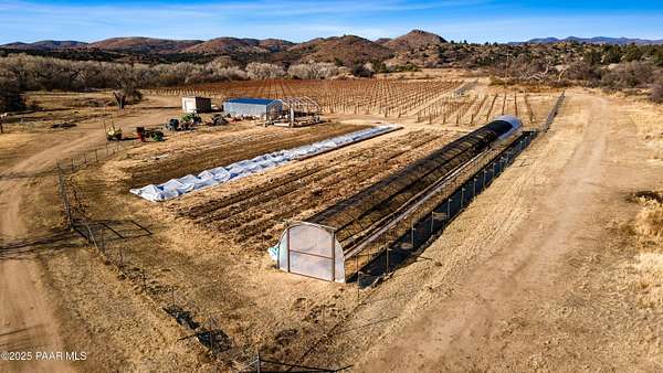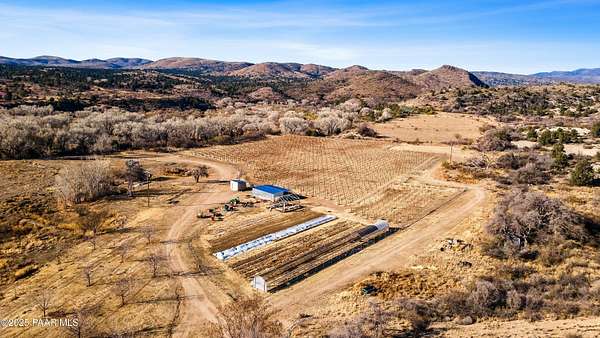 Hassayampa Vineyard & Farm with Creamery Abundant water flows throughout this incredible property in many forms including a bubbling artesian well, 9 drilled wells and the perennial Hassayampa River. BONUS - this property is NOT in an AMA. There are 12 planted acres of vineyards with 7 varieties of high-quality grapes and ample room to expand. The orchard produces apples, peaches, plums and table grapes with cherry trees waiting to be cross pollinated. Pecan Grove is in a separate area. Fully fenced garden includes a large hoop house. Located at 3450' elevation, the fertile soil and generous growing season provide near-perfect climate and conditions for exceptional yield and production. * See VIDEO in Slide 2 OF 'PHOTOS' Tab. * BE SURE TO CLICK 'MORE' FOR ADDT'L IMPORTANT DETAILS *