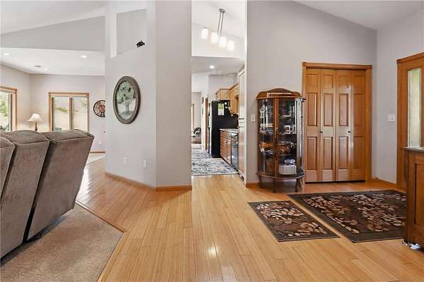Just a stone's throw from Lake Koronis, this 3 bedroom, 2 bathroom patio home has a ton of amazing features! Situated wonderfully on a 1.95 acre lot with a spring fed pond just 1 mile from Paynesville city limits and half a mile from Veteran's Park and boat launch on Lake Koronis, this location is hard to beat. The home features two zone in-floor heat, central air, primary suite with jetted tub and walk-in closet, granite countertops, central vacuum, Anderson windows, gas fireplace, paver patio, bamboo flooring, and cement board siding. An attached insulated and heated garage makes for easy living even when the temperatures dip. The cherry on top is a 36' x 36' insulated and heated shop with 12' side walls, 14' x 12' overhead door, and a 220 outlet built in 2016. The shop was designed to house collector tractors and has 5" thick concrete. Rarely does a property like this hit the market in Paynesville. Call today to get your foot in the door!