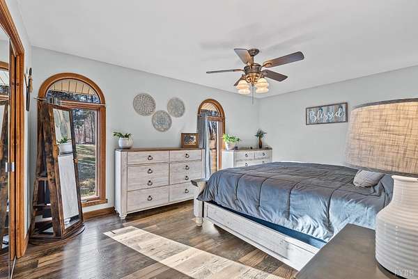 - Ceiling Fan(s), Main Level Bedroom, Plaster, Primary Bed W/Bath, Smoke Alarm, Tile Bath(s), Walk-In Closet(s)