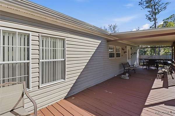Where the river winds, the manatees glide, and life moves a little slower-Welcome to Homosassa. This beautiful 4-bedroom, 2-bath Manor mobile home offers comfort, style, and space, situated on 3.13 peaceful acres located between Homosassa and Crystal River. The updated kitchen features Frigidaire stainless steel appliances, granite counter tops, and a marble tile accent wall. Additional highlights include new SmartCore flooring, spacious front and back porches, and a 2-car carport/workshop equipped with electric. The fenced in yard provides privacy and ample room to store your boat, RV, or outdoor toys. Newer HVAC (06/24'), Newer hot water heater and sprinkler system. Enjoy the tranquil surroundings from the large porches--great for relaxing and taking in the natural setting. Conveniently located near local amenities, shopping, and the Gulf Coast's natural attractions, this home invites you to embrace the Florida lifestyle.