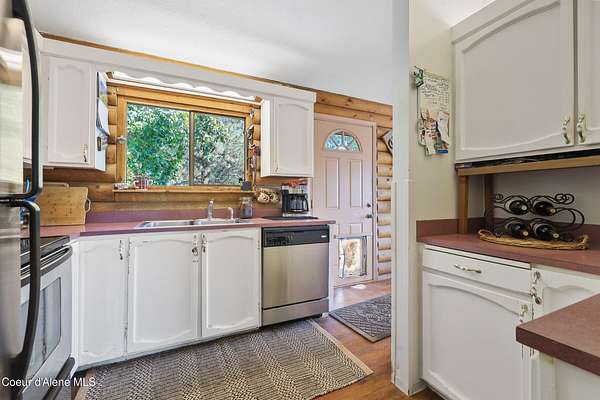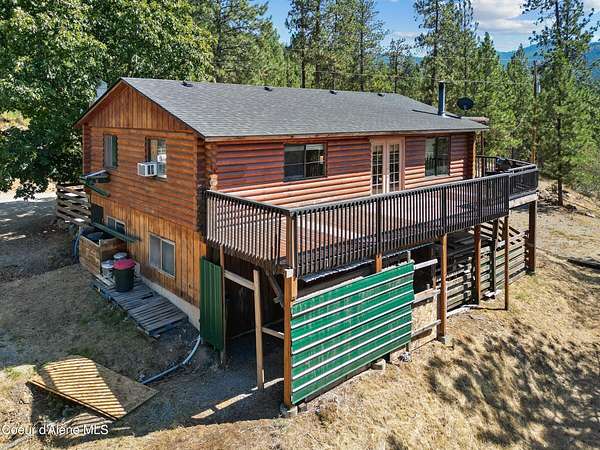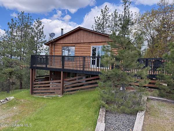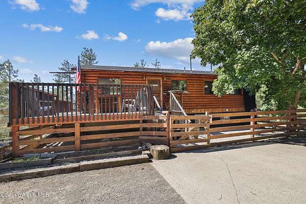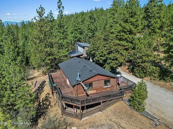 LIVING IN NORTH IDAHO! Embrace the North Idaho lifestyle in this 1980, 2,000 SF log home rancher nestled on a private 3.16-acre setting with beautiful views of Post Falls. Featuring 4 bedrooms, 2 bathrooms, and a daylight basement, this home offers warmth, charm, and plenty of space to grow with a new roof Mini Split heating/AC, and sliding door. The property also includes an unfinished 42' x 30' garage/shop with a 15' x 42' loft and a 12' x 36' lean-to, complete with roughed-in plumbing and electrical. Whether you need extra storage, a workshop, or future guest quarters, the potential is endless. Enjoy peaceful country living while being just minutes from I-90, Stateline, shopping, and schools. Bus stop is conveniently close by, making this a well-connected location without sacrificing privacy, With room to customize, expand, and make it your own, this property is the perfect blend of space, opportunity, and North Idaho charm.