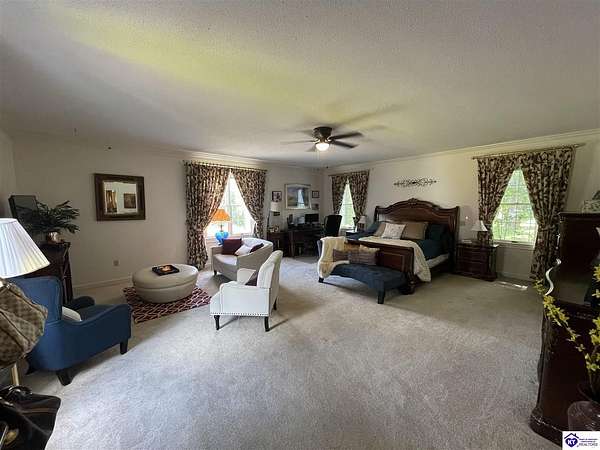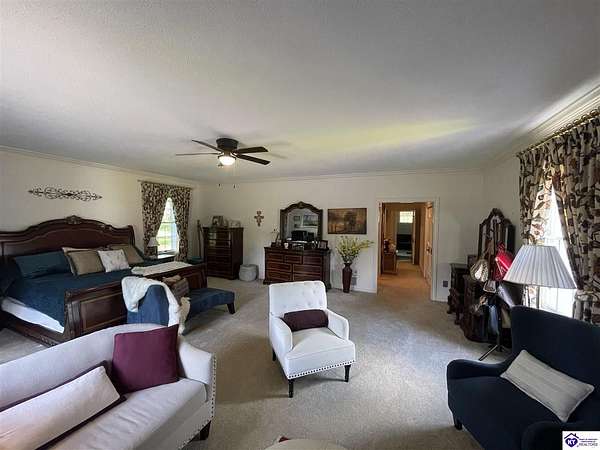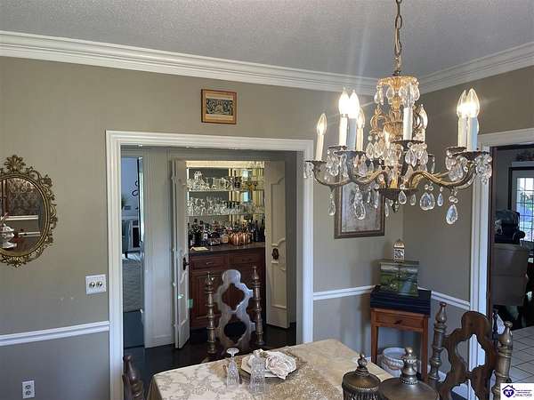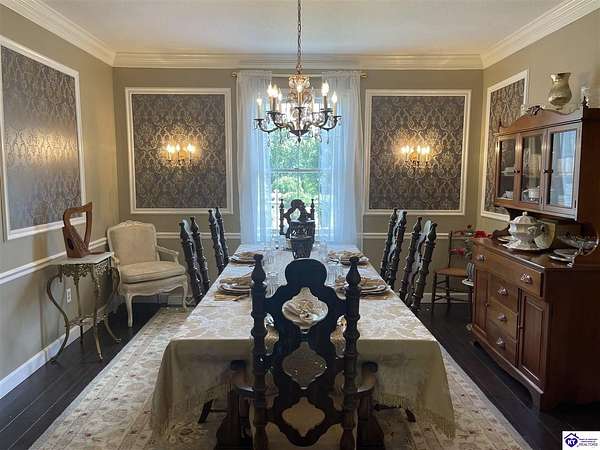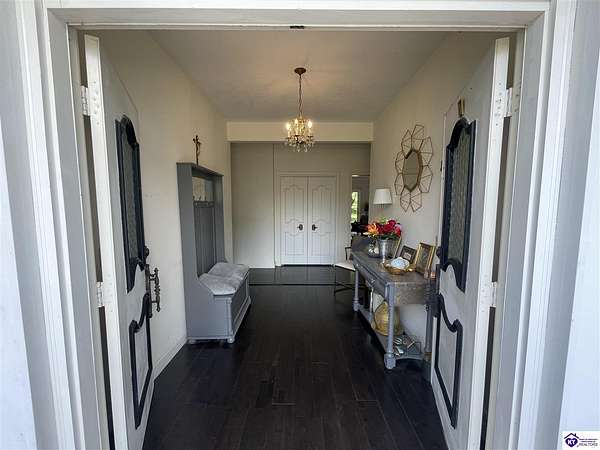 Stunning Multi-Generational French Traditional Estate on 10.86 Acres 1-Year Home Warranty Included! Welcome to this breathtaking French traditional brick estate, perfectly nestled on 10.86 private, tree-lined acres. A long, scenic driveway provides a grand entrance to the home, ensuring optimal privacy and a picturesque approach. This multi-generational property is ideal for large families or those seeking luxurious space with flexible living arrangements. Exterior Features: A beautiful blend of mature apple, pear, peach, walnut, and pine trees throughout the grounds. Working swim spa and expansive tiled patio, ideal for outdoor entertaining. Extensive parking with a 2-car attached garage and a 5-car detached garage, including a large bay for boat storage. Hiking and drivable trails wind through the property, enhanced by hand-placed stone walls and scenic resting points. Interior Highlights - Main & Upper Levels: A welcoming foyer leads into elegant living spaces with classic French traditional charm. Massive upper-level master suite featuring separate his-and-hers closets and full private baths. Three additional spacious bedrooms with a shared full bath and a half bath for convenience. Formal living and dining rooms with an adjoining dry bar designed for sophisticated entertaining. Bright, updated eat-in kitchen featuring new quartz countertops, modern appliances, and a wine/beverage center, opening into a cozy family room with patio access and a working fireplace. Large utility/craft room with ample space for hobbies and storage. Lower Level Living: Designed with soaring 10.5-foot ceilings and a full second kitchen with quartz countertops. Stylish master suite with solid marble walk-in shower, marble countertops, and large walk-in closets with exterior access. Open-concept living, dining, and entertaining areas with sleek, modern finishes throughout. Two bonus rooms currently used as bedrooms, perfect for guests, in-laws, office space, or gym. Bonus Buyer Incentives: 1-Year Home Warranty provided at closing for added peace of mind. Additional Notes: This estate is a rare blend of timeless architecture, practical multi-generational design, and luxurious finishes--truly a must-see for qualified and discerning buyers. A mortgage prequalification letter is required prior to any showings.