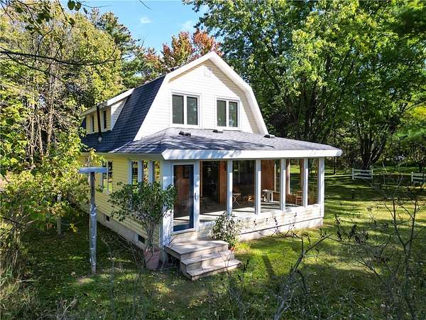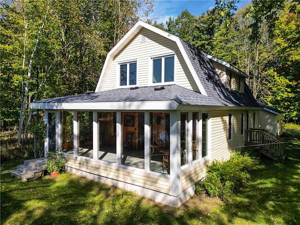This charming property is nestled on 10.8 acres along the shores of stunning LOON Lake with waters reaching depths of 63 feet. This property offers unmatched peace, privacy, and natural beauty. Don't let the "original age" of this house fool you. This 1920 farmstead has received plenty of upgrades over the years, including a new basement, whole-house generator, siding, windows & more. Additional features include a large classic barn, gazebo, a silo full of character, and plenty of room to explore, garden, or simply enjoy the peaceful surroundings. The yard is dotted with mature trees, providing shade, privacy, and a timeless sense of tranquility. One of the highlights of the home is the sunroom-featuring floor-to-ceiling windows that offer breathtaking panoramic views of the lake and surrounding landscape. It's the perfect space to relax, entertain, or simply soak in the scenery. Just 10 minutes from Birchwood, and 20 minutes from Rice Lake.
