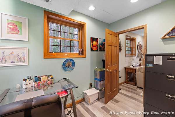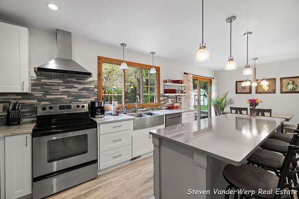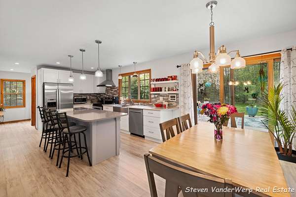 Set on 1.5 wooded acres in West Olive, this 4-bedroom, 2.5-bath home offers privacy, comfort, and a peaceful setting just minutes from the shoreline of Lake Michigan. The home features a beautifully remodeled kitchen with stainless steel appliances and custom cabinetry, along with updated bathrooms and a well-designed layout that provides ample space for everyday living, working from home, and entertaining. Surrounded by mature trees and natural landscape, the property offers open green space and a serene outdoor environment ideal for relaxing or hosting gatherings. Enjoy the convenience of nearby lakeshore amenities while maintaining the tranquility of a private, wooded retreat. Call today for a private showing.