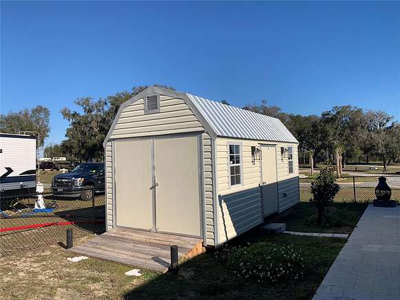 Lake Oklawaha Resort ~ Deeded CORNER FENCED lot with GATE with green space next to it. Concrete driveway. Large SHED. Includes fire chimney and 4 person pop-up tent. Great opportunity to live here, use as a weekend retreat or as an investment property ~ AirBnB/Vrbo! Amenities for all ages include a pool, clubhouse, laundromat, dog park, beach area, playground, corn hole, volleyball, ATV riding trails, nature trails to lake and outlook, and much more. Close to downtown Fort McCoy with grocery store, doctor's office, pharmacy, hardware, gas station, pizza delivery and 30 miles to Ocala's conveniences. For the outdoor enthusiast, lakes, springs, and Ocala National Forest are close by for you to enjoy fishing, hunting, hiking, canoeing/kayaking, and ATV trails! HOA includes electric, water, sewer, trash, and amenities. RV is available for sale separately for $58k.