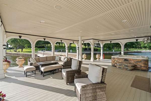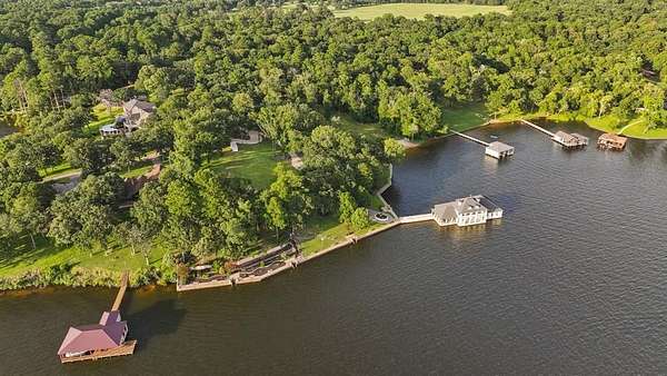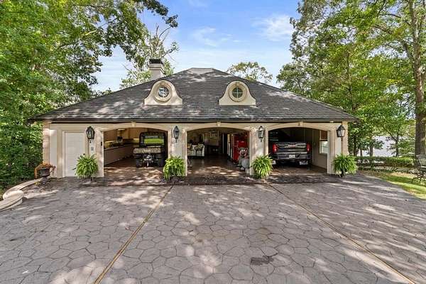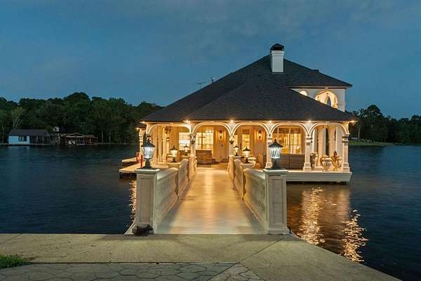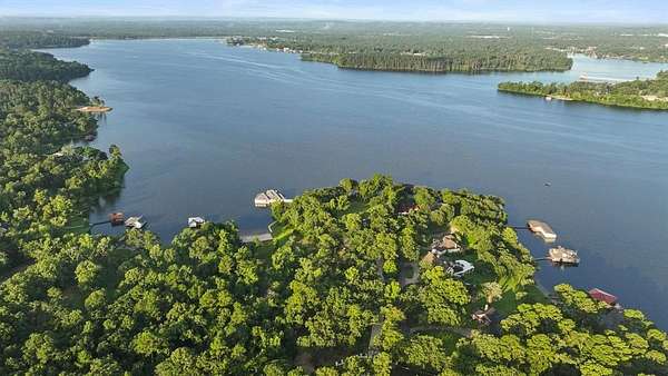 This breathtaking 5.9-acre property offers 715 feet of prime shoreline with a concrete bulkhead and a scenic sidewalk running along the water's edge. Panoramic lake views on open water, and your own private white sand beach, the ONLY beach of its kind on Lake Tyler. The estate includes a 5,811 sq ft under roof high-end boathouse designed for luxurious living and entertaining--featuring covered porches and balcony, an outdoor spa, 3 boat garages, a floating dock, and upscale finishes throughout.