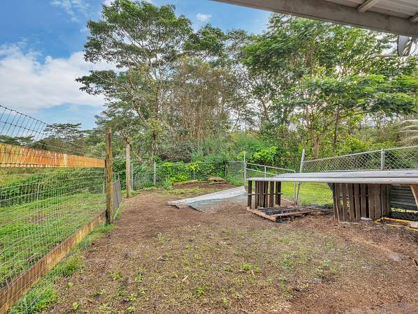 Welcome to this spacious residence situated in the Hawaiian Acres subdivision, set on a generous three-acre parcel. The home features four bedrooms and three bathrooms, complemented by an expansive living room and dining area ideal for comfortable living and entertaining. Enclosed lanais at both the front and rear of the home provide additional versatile space to enjoy the surrounding landscape. The property is well-equipped for agricultural or equestrian use, with existing structures suitable for farm animals, horses, or livestock, as well as a pond. Enjoy a variety of mature fruit-bearing trees, including banana, starfruit, lime, mountain apple, lychee, white guava, and chestnut. Conveniently located in Hawaiian Acres, the property is approximately 15 miles from Hilo and just 11 miles from Pahoa, providing a balance of privacy and accessibility.