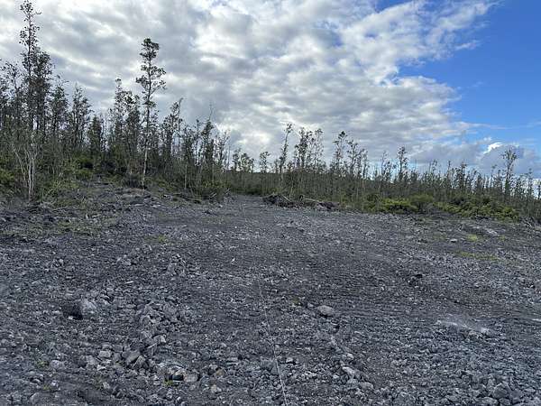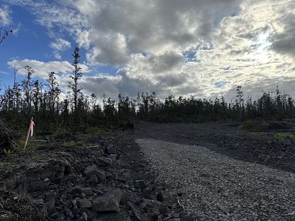 Two side-by-side parcels (3 acres each) are available in Hawaiian Acres, offering a combined total of 6 acres. (see MLS 723445) Located only a few lots in from the corner of Road 3 and Road B, these lots provide convenient access from three routes: Road 1, Highway 11, and Moho Road- Just a short drive to pavement. Recent staking was completed in April 2025, with all corners pins clearly visible and additional point on line (POLs) placed along the boundary lines of the first two acres. Seller prefers to sell both lots together, providing an excellent opportunity for a larger estate, agricultural use, or both. This parcel features a curved driveway of over 300 ft, covered with drain rock, leading to the middle acre, which has been bulldozed and cleared for development. Multiple buildable sites are available, with the potential for distant ocean horizon views. The front acre is primarily cleared for the driveway and fencing, while the back acre remains untouched, offering natural privacy and future possibilities. The property includes a truckload of Hamakua soil and a truckload of black cinder, both available for planting and landscaping projects. Located at approximately 1,200 foot elevation and in lava zone 3. Do not enter the property without an appointment. 24 hour noticed preferred.