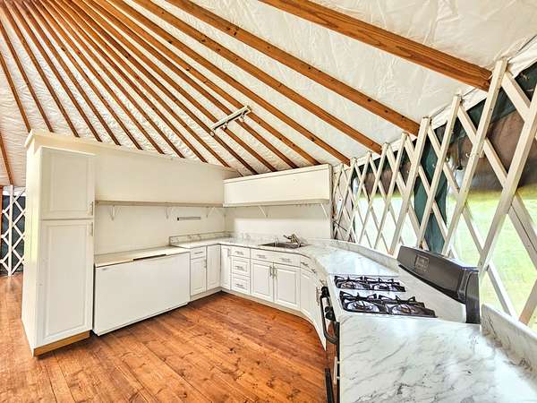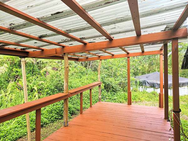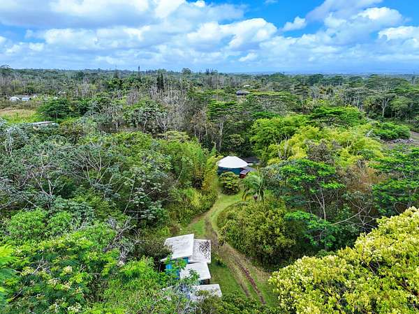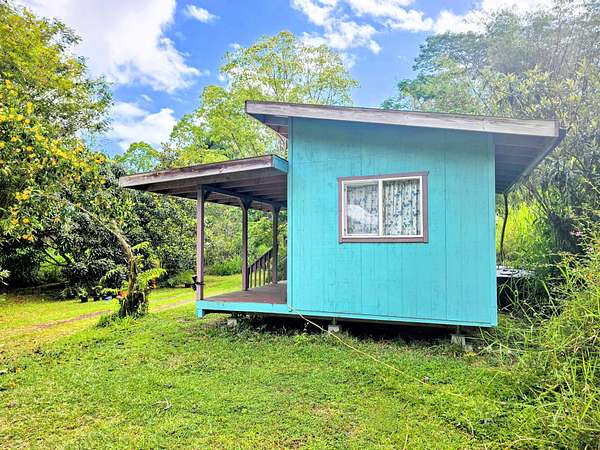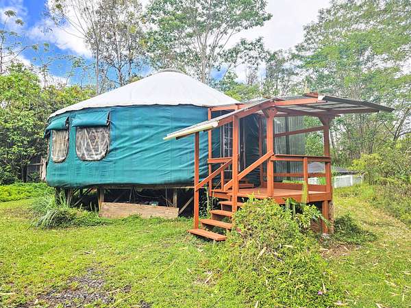 You know what's located on 36th Ave? Not much, unless you like a lot of peace and quite because there is plenty of that. If you like peace and quiet, this is the place for you. Located on rural 36th Ave about mid-way between the roads of Laniuma Street and Pohaku Drive are two acres of paradise. That's what makes this location perfect for the rustic retreat built upon it. The lot itself is densely wooded with both rocky and grassy undulating terrain. There is an abundance of thick vegetation in the front of the lot, creating a wonderful screen at the road. Within the lot there are waiwi (strawberry guava), ohia, magnolia, and rainbow eucalyptus trees. With ample sunshine and rain, this is an ideal climate. Just about any tropical plants and fruits can grow in the area without extensive irrigation or greenhouses necessary. The primary structure is the yurt (circular tent structure with semi-rigid sides) in the approximate center of the property where the kitchen, main living space, and sleeping are housed. Behind the yurt is a covered lanai with attached bathroom accommodations. In addition to the yurt and accessory structures in the back are the twin cabins in the front third of the property. Each cabin has its own covered front porch and they share the bathhouse structure that is situated between them. Catchment water and solar power are key to the sustainability of the property. Orchid Land Estates is located: close to Pahoa and Keaau. Shopping, necessities, government services, schools, parks, the Pacific Ocean, and so much more are just a short drive from the property. Hilo town is a little further away, and provides the bigger conveniences you may need: the Hilo Medical Center, University of Hawaii at Hilo, the historic Palace Theater, and the Hilo International Airport are but a few.
