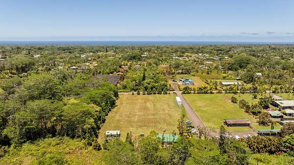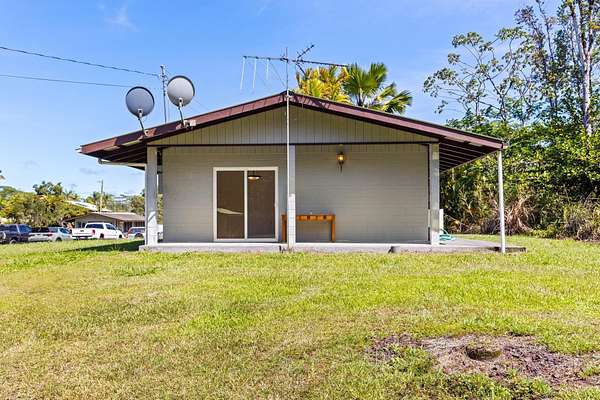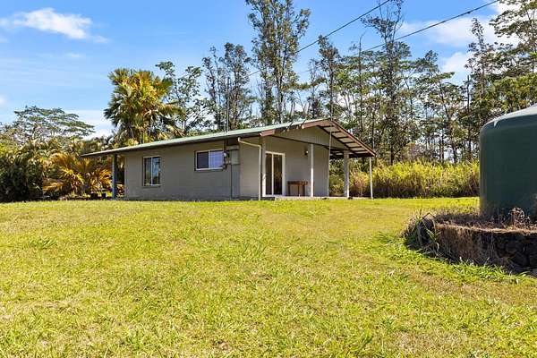 PACKAGE SALE HOME + 2 ADDITIONAL LOTS Rare package opportunity - a charming home on 2 acres plus two adjacent lots, offering a total of 6 beautiful acres to enjoy. Sale includes TMKs 3-1-6-9-53, 3-1-6-9-54, and 3-1-6-9-55. All three lots are being sold together, providing space, privacy, and endless possibilities. Escape to your own piece of paradise in Orchid Land Estates with this well-maintained 1-bedroom, 1-bath home situated on 2 cleared acres. Surrounded by natural beauty, the home offers a cozy 672 sqft of living space and features a separate detached shed perfect for a workshop, art studio, or additional storage. The kitchen has a convenient eat in bar, with open concept living. Enjoy added privacy, security and peace with the Hawaii County Animal Control as your next-door neighbor. The land is cleared and grassy, creating a peaceful and open setting with ample space to farm, or simply relax. There is over 200 feet of chain link fencing & entry gate fronting the road. Overhead electricity, catchment water system, and cesspool are already in place. Located in Lava Zone 3 and Flood Zone X, this property is outside higher-risk areas, offering additional peace of mind. With quick access to Highway 130, you're just a short drive from Hilo, Pahoa, and all the conveniences of town while enjoying the privacy and serenity of country living. Whether you're starting your homeownership journey or looking for a peaceful place to call your own, this charming property offers comfort, space, and endless potential to make it truly yours.