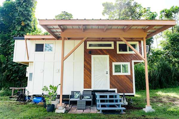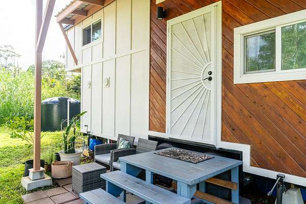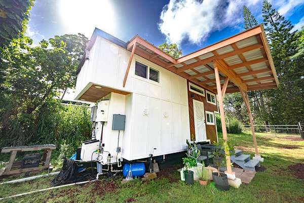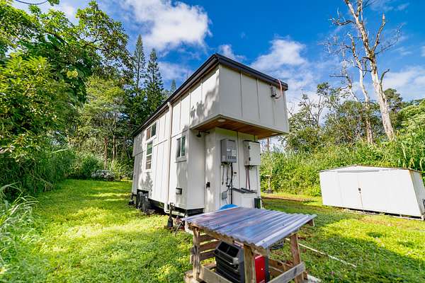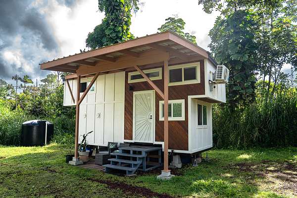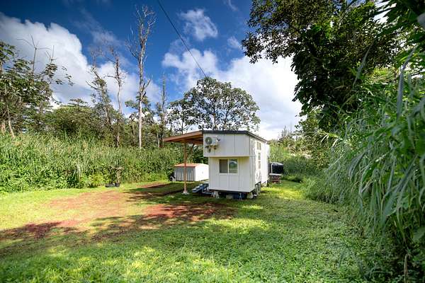 Seller financing available, inquire today! Welcome to this charming tiny home in Tiki Gardens located between Hilo & Pahoa town. Featuring Off-Grid Living with vibrant finishing touches. This custom-designed tiny home, built by Mockingbird Tiny Homes in 2022, offers the perfect balance of comfort, sustainability, and island living. Whether you're looking for a full-time residence or a vacation getaway, this 280 sqft tiny home is a true gem. Fully mobile on a 20 ft x 8 ft trailer, it's designed for those who seek adventure while still enjoying luxury. Key Features: - Custom-Designed & Fully Mobile: Built with care and attention to detail by Mockingbird Tiny Homes, this 280 sq ft home features two cantilevered lofts that elevate the roofline to 26 ft, creating a spacious and airy feel. - Beautiful Interior: Luxury vinyl plank flooring, pinewood accent walls and live edge butcher block countertops. Custom tilework in both the kitchen and bathroom! - Sustainable Living: Equipped with a 2500-gallon poly tank water catchment system, six 365 REC PV solar panels (2,190 watts total), and a Growatt 3000 TL inverter, this home is fully off-grid, powered by renewable energy. The 48V Discover lithium battery with 130-amp hours ensures you'll have reliable energy storage. - Secure & Private: The fully fenced-in property provides privacy, while a metal security door adds peace of mind. A covered lanai, added just one year ago, offers a comfortable space to enjoy the outdoors and soak in the Hawaiian sunshine. - Exterior & Lot: The home features beautiful cedar accent siding that blends seamlessly with the natural surroundings. The lot offers a private, peaceful setting, perfect for those looking to immerse themselves in the beauty of Hawaii. NOTE - property is in Flood Zone X. X is the lowest level of risk area (less than 1%annual risk from surface flooding). Lava Zone 3.