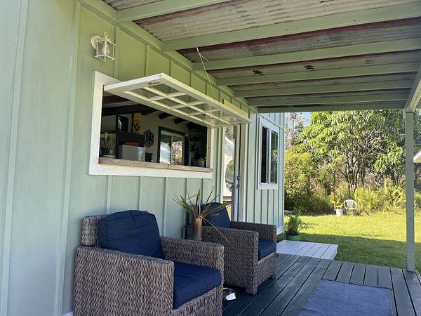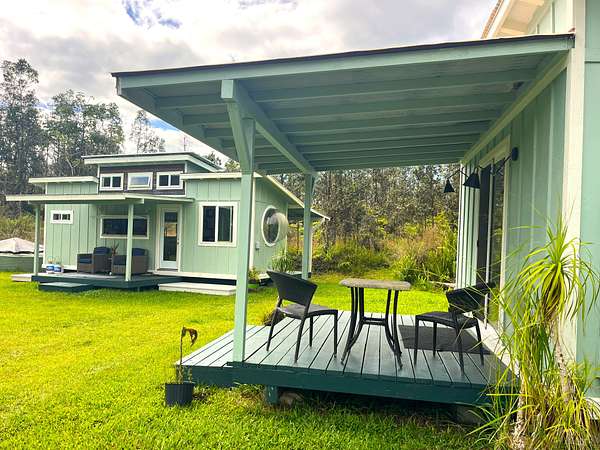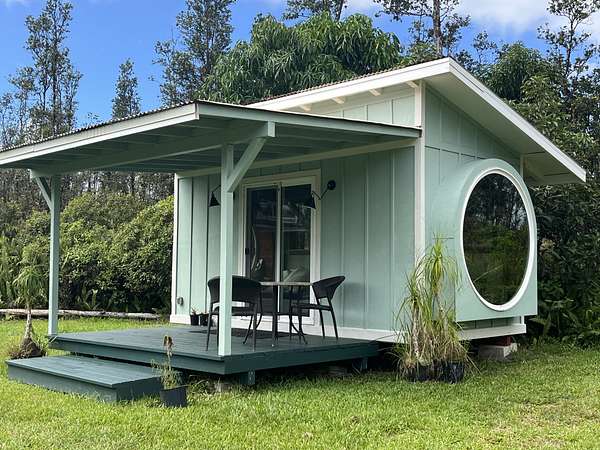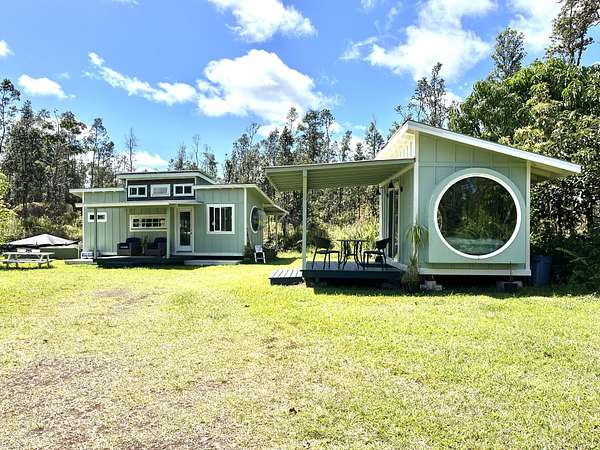 Seller Financing with 50% Down. Discover your dream oasis with this exceptional 3-acre property, in prime location on Moho Rd in Hawaiian Acres. Nestled in stunning Ohia Forest, this unique retreat offers unparalleled privacy, making it the ideal sanctuary for those seeking adventure and tranquility with an authentic Island vibe. 1-Bedroom, 1-Bathroom Tiny Home: *Bright open living area featuring a unique round, bubble window *Thoughtfully designed galley kitchen with generous counter space, storage, and modern amenities *Cafe-style kitchen windows seamlessly connect to both front and back lanais, perfect for entertaining guests *Spacious King-sized loft bedroom with multiple windows for refreshing evening breezes and abundant natural light *Stylish full bath with a dual-head custom tile and copper shower, convenient closet, and standard toilet * PV Solar system (EG4 inverter and batteries, 4x420w panels- specs available)) *Catchment * Sold Furnished *High Speed Fiber Optic Internet *Enjoy more time exploring the Island with a low-maintenance home and yard Separate Studio/Guest House: *Open-concept space with a large front lanai *Ideal for hosting visitors, as a creative retreat, or simply unwinding Ideal Location: *Gated, private 3-acre property offering ample space for expansion. *Perfect elevation for cultivating tropical fruit trees and flourishing gardens *Quick access to Pahoa, Mt. View, Volcano National Park, and the breathtaking Kalapana Coast *Just 30 minutes from Hilo for shopping, dining, & the international airport * SSPP Paid in Full *Lava Zone 3 * Flood Zone X-Not in Flood Zone per FEMA Flood map *Seller Financing may be available with 50% down For Video link; Copy and paste This serene retreat strikes the perfect balance of adventure, sustainability, and privacy.