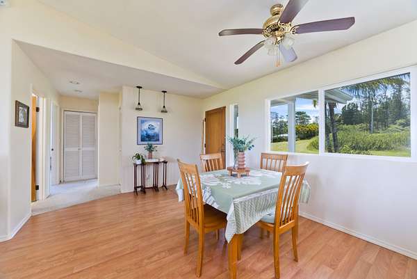 Welcome to your own slice of paradise on 5 acres along Ainaloa Blvd! This 3-bedroom, 2-bathroom home with an enclosed garage was built in 2003 and is ready for its new owners. Best of all, it's eligible for all loan types! Set on a sprawling agricultural parcel, this property is perfectly suited for grazing cattle, horses, chickens, or starting your own sustainable farm. With no large trees on the acreage, you'll enjoy wide open spaces, ocean views, and endless potential. A row of established palms lines the frontage, creating both beauty and privacy as you enter. The home offers a thoughtful layout with comfortable living areas and plenty of natural light. The enclosed garage provides secure parking and additional storage for vehicles, tools, or outdoor gear-ideal for anyone looking to live the Big Island lifestyle. Convenience is just minutes away-head into Pahoa Town for shopping, dining, and the new Puna Kai Shopping Center, or take a short drive to Keaau for additional markets, schools, and services. Hilo is within easy reach for work, entertainment, and major amenities. This is a rare opportunity to own acreage with views, a solid home, and versatile agricultural potential in one of Puna's most convenient locations.